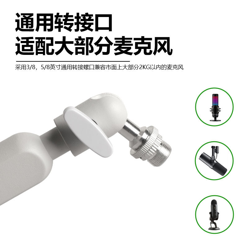 高端麦克风悬臂支架桌面直播防抖手机平板白色低位万向多功能支架