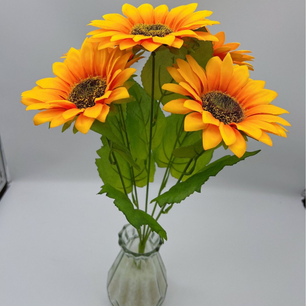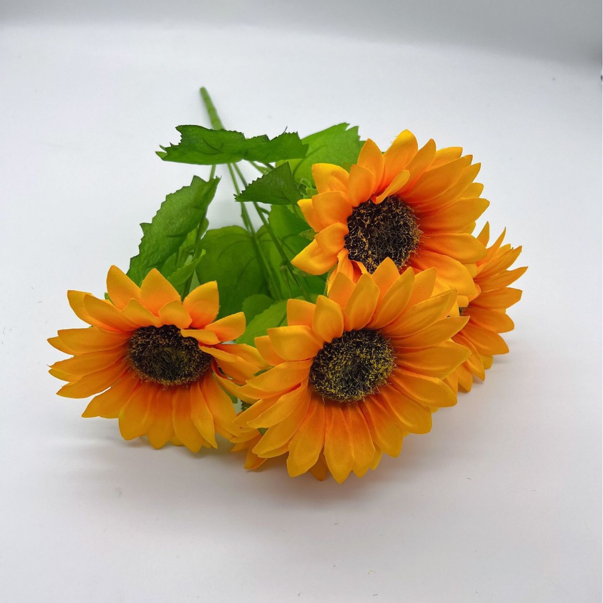 仿真向日葵5头小把太阳花家居装饰布置道具手工人造假花摆件批发