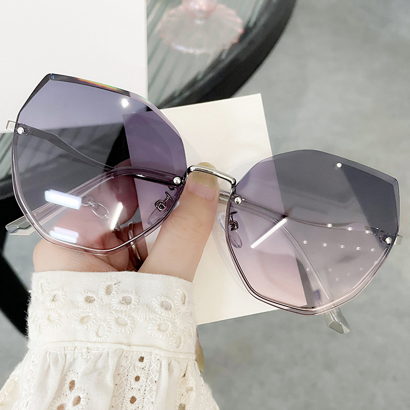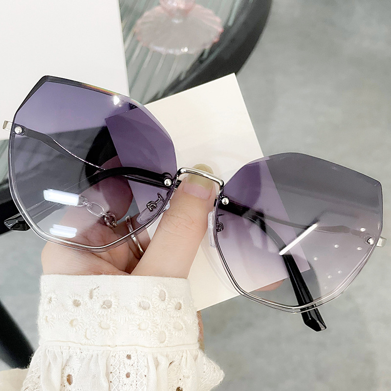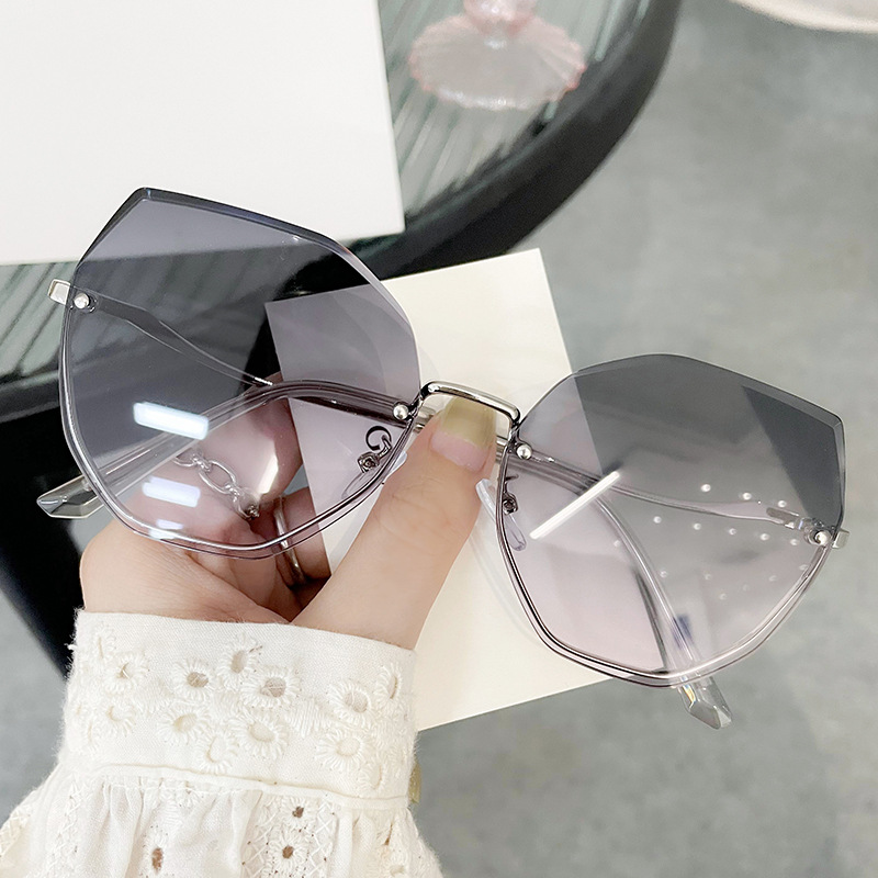 欧美时尚多边形切边无框太阳镜女韩版大框圆脸街拍网红气质墨镜潮