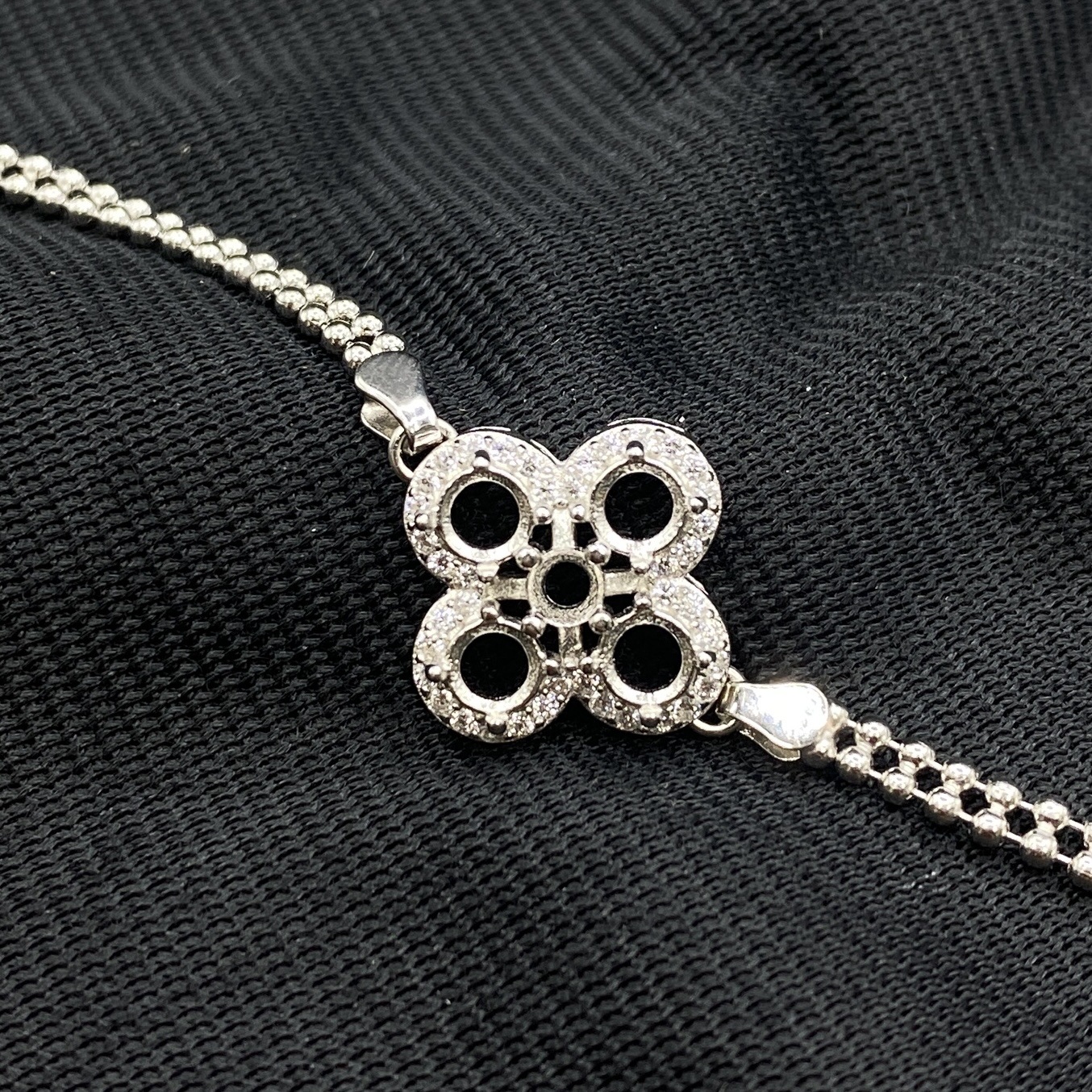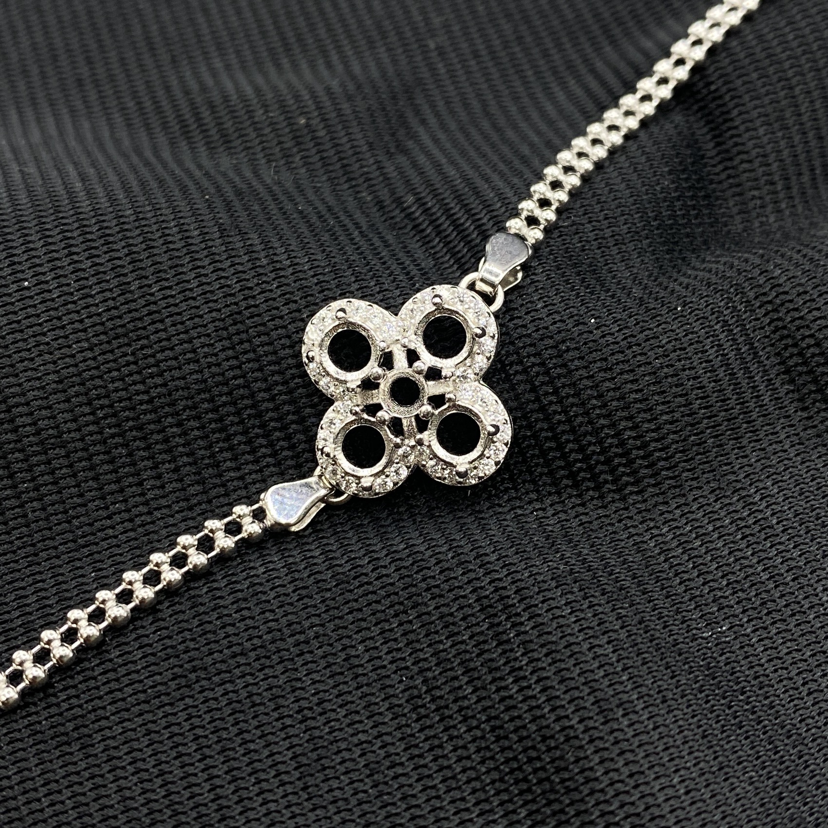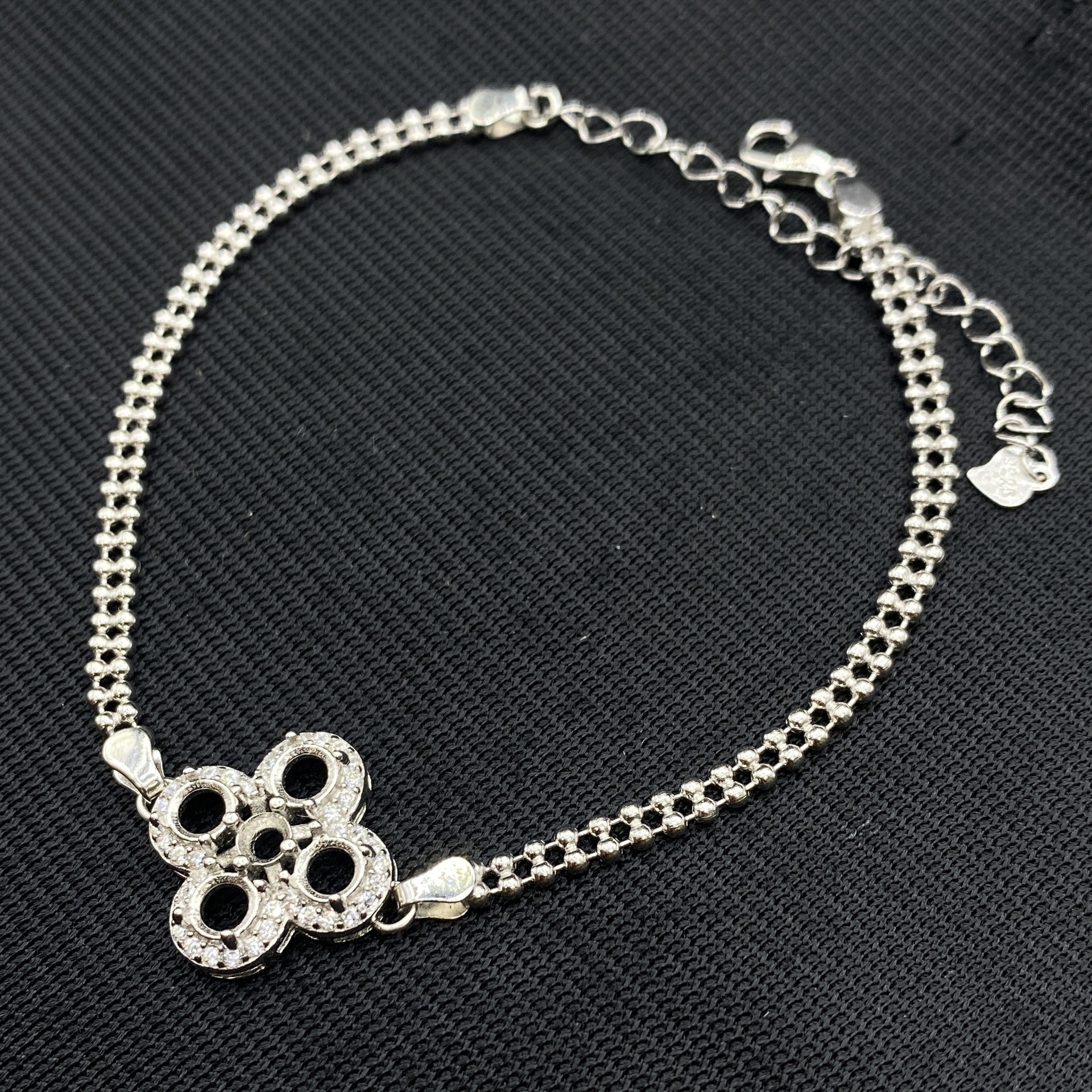 s925纯银手链空托危料翡翠银托群镶四叶草手链女未镶嵌高级感