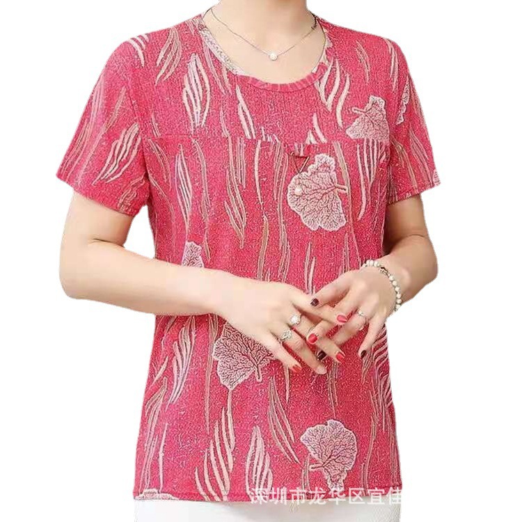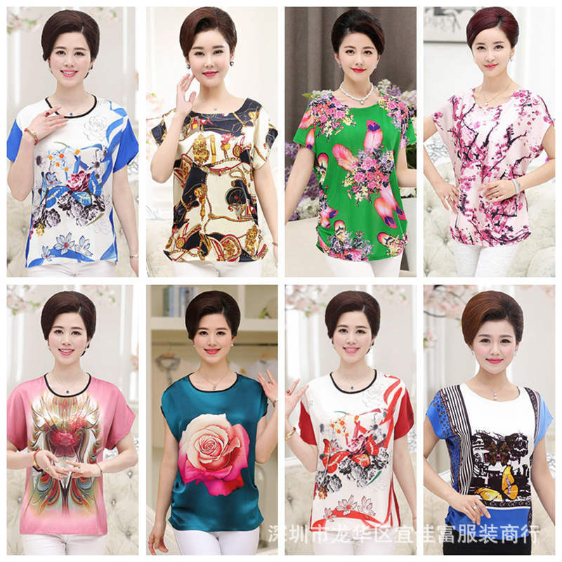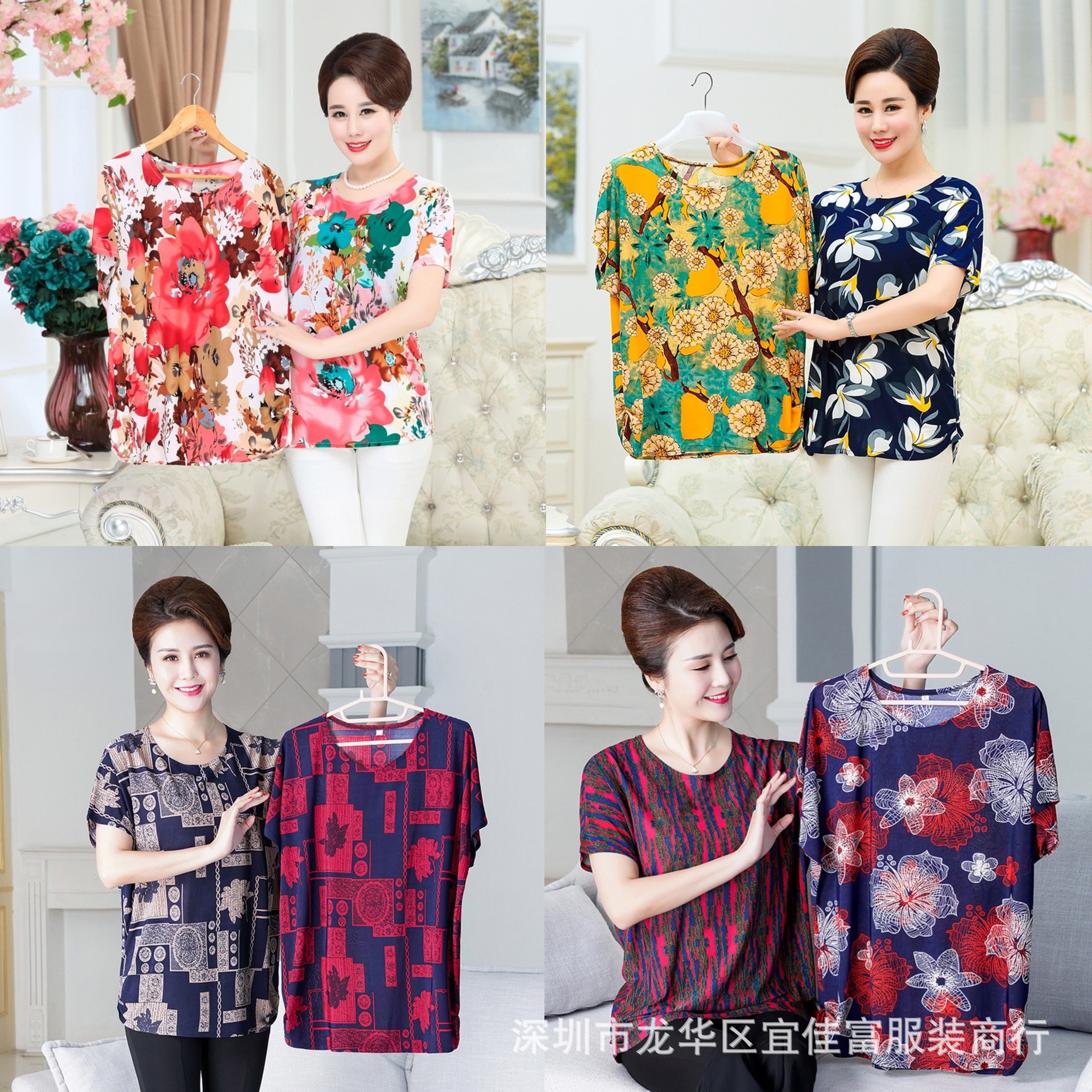 妈妈装大码夏装中老年女装t恤地摊批发奶奶新款短袖上衣赶集货源