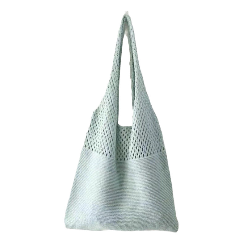 简约新款韩国复古时尚针织镂空单肩毛线休闲大容量购物袋编织包25
