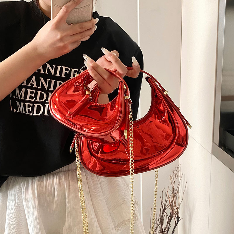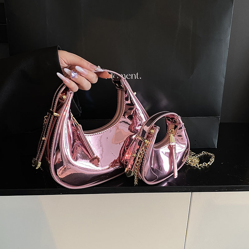 迷你小包包 女童2025春季 新款洋气银色亮面新月包百搭气质手提包