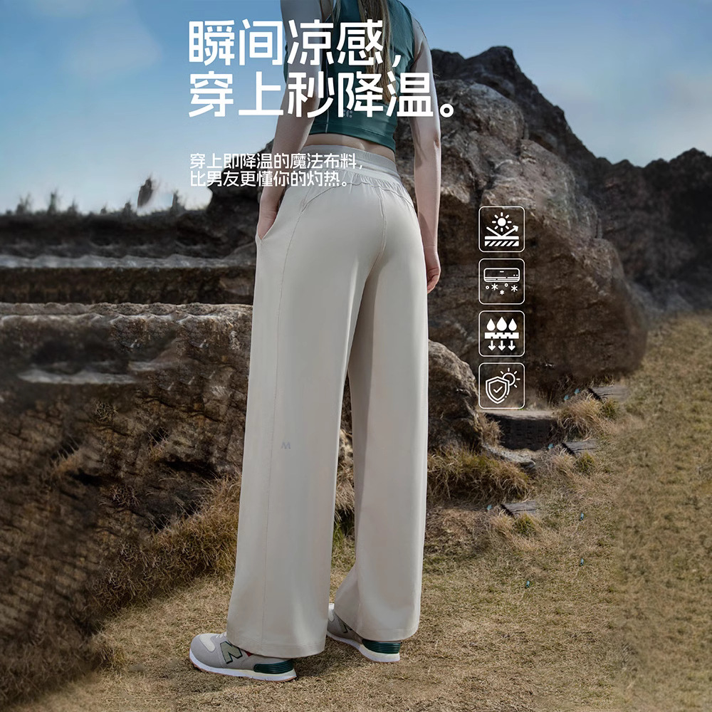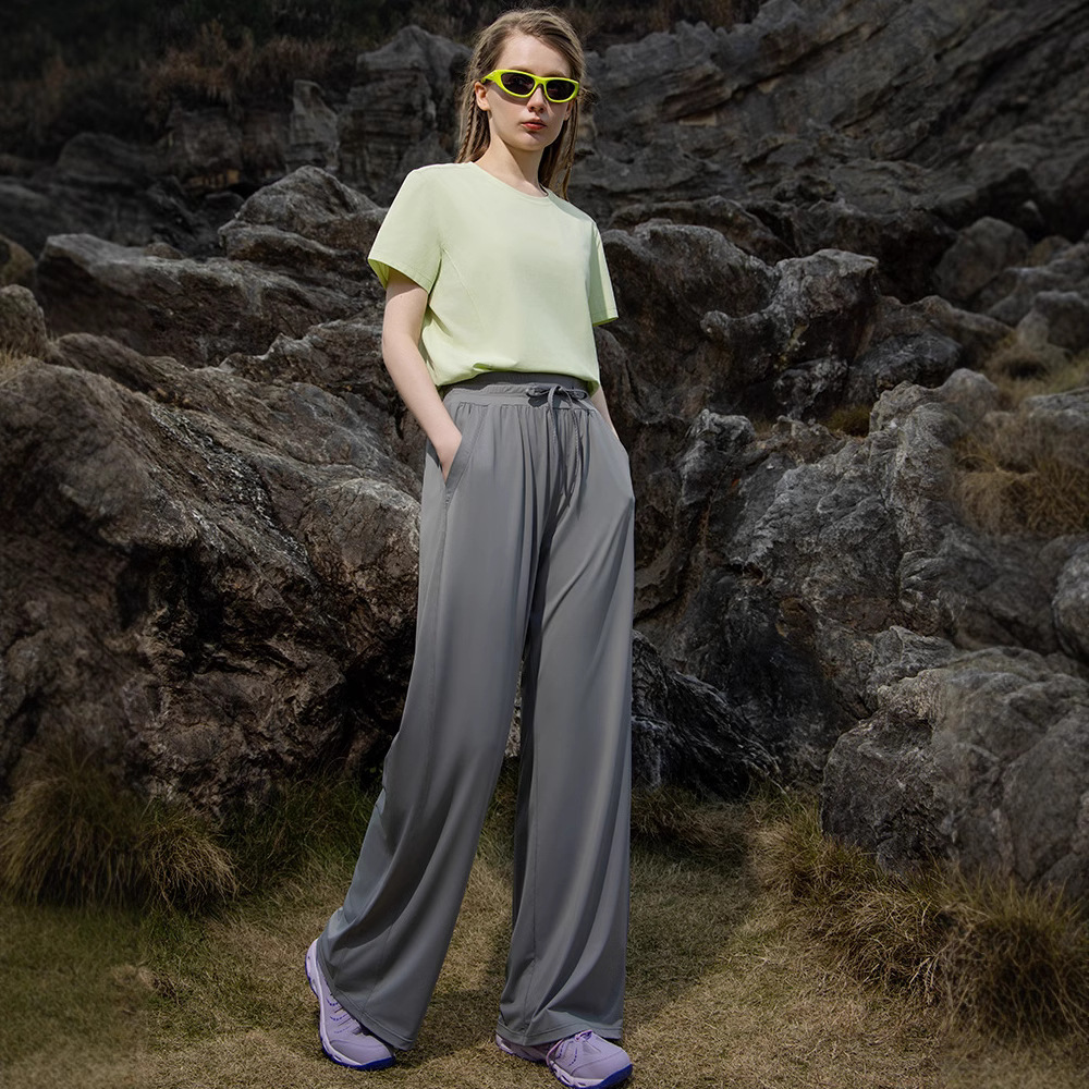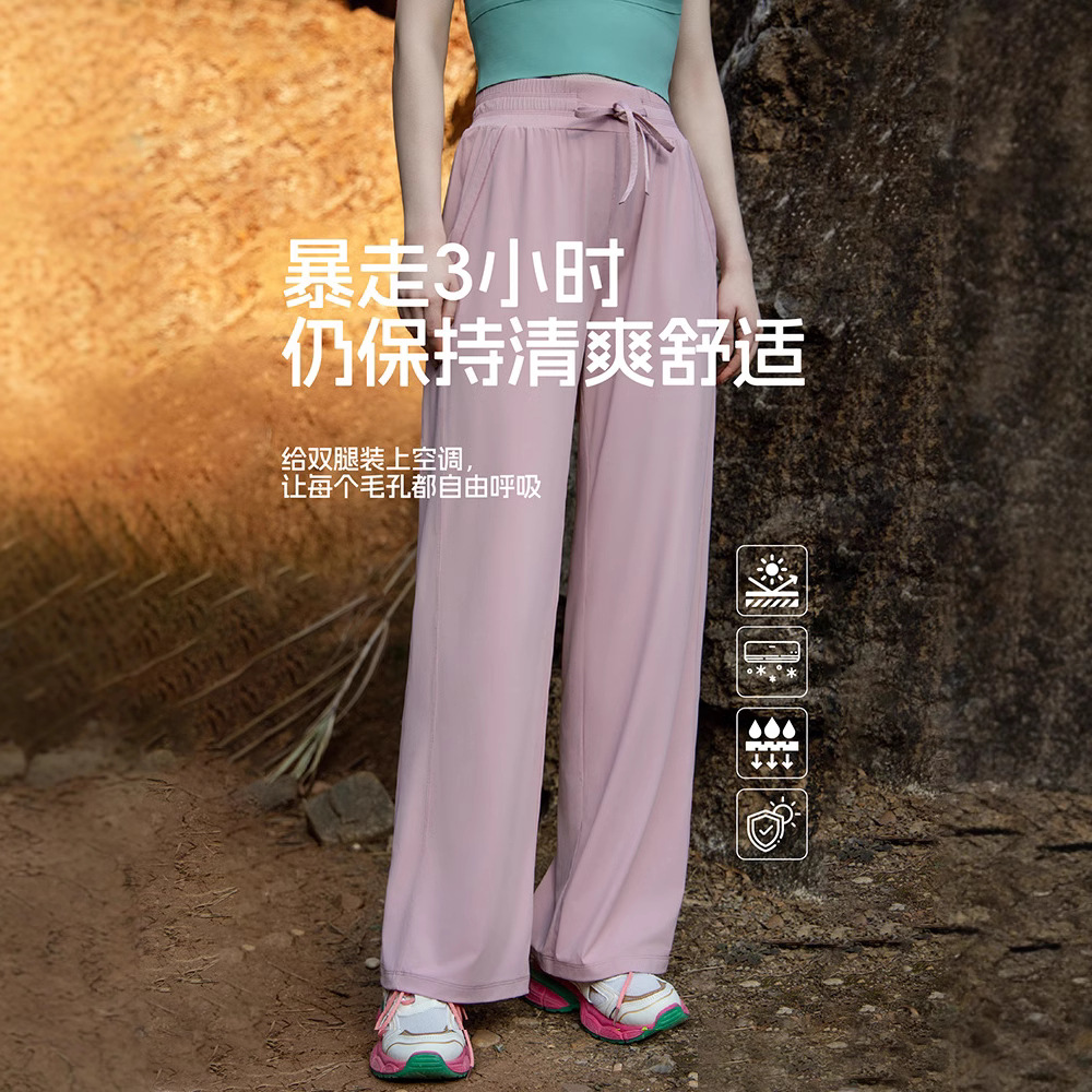 新款速干冰丝阔腿裤垂感高级感黑色薄款宽松休闲裤运动直筒防晒裤