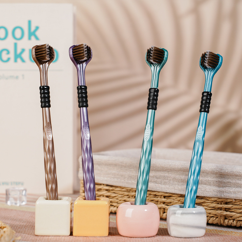 单支双支牙刷成人软毛立体牙刷三头3D型家用情侣三面立体软毛牙刷