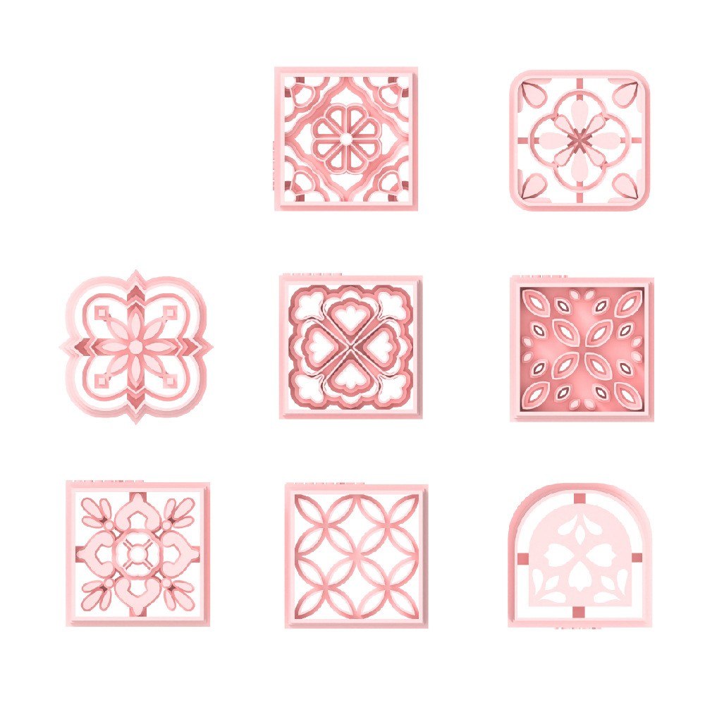 8件套跨境方砖国风系列软陶粘土模具高精度刀模耳饰clay cutter