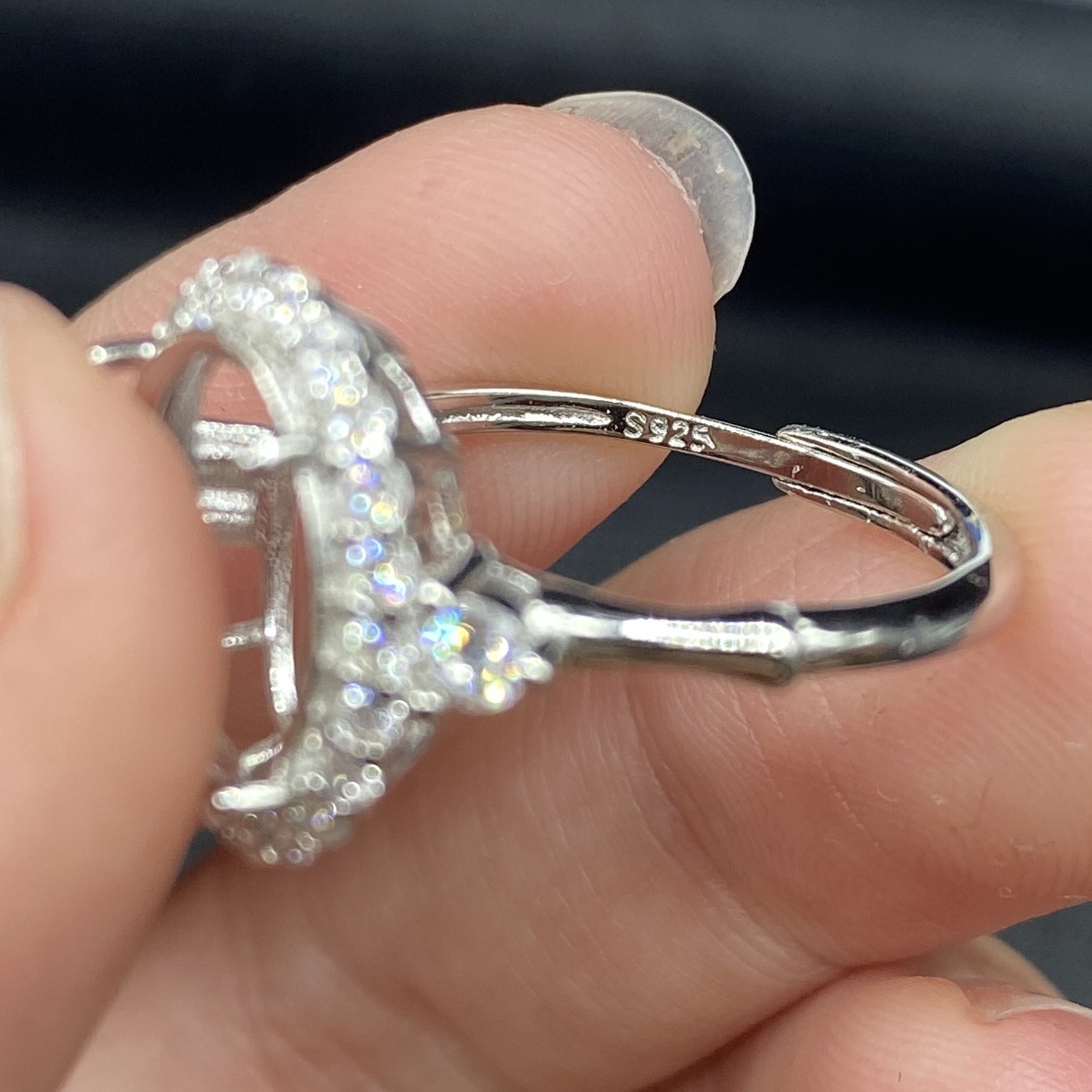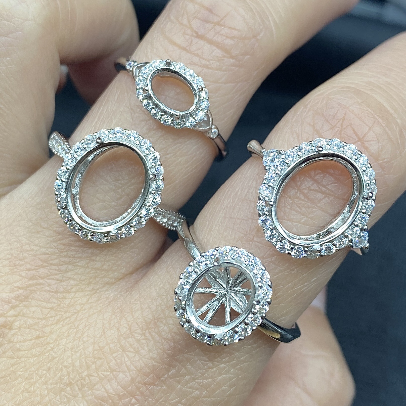 s925纯银戒指女银托翡翠蛋面玉髓彩宝空托高级感空托戒托配饰批发