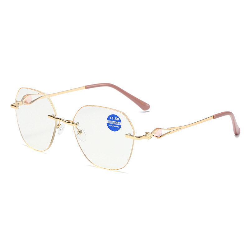 时尚优雅女神璀璨香槟金无框眼镜女时尚老花镜防蓝光