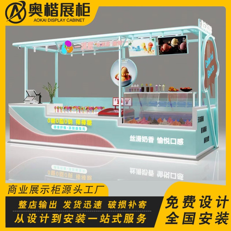 万达商场冰淇淋多经点位过道烤漆展示柜鸡蛋仔奶茶店小吃柜台定制
