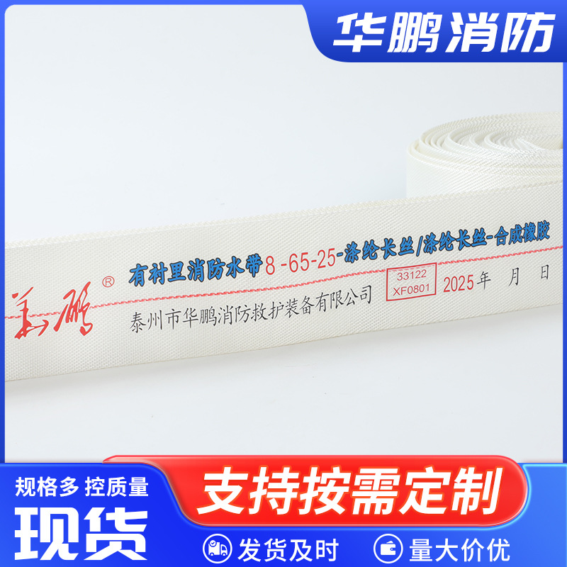 消防水带8-65-25m涤纶长丝编织合成橡胶有衬里厂家批发包检水带