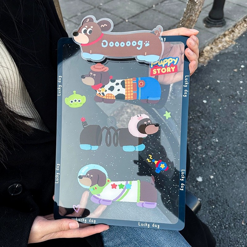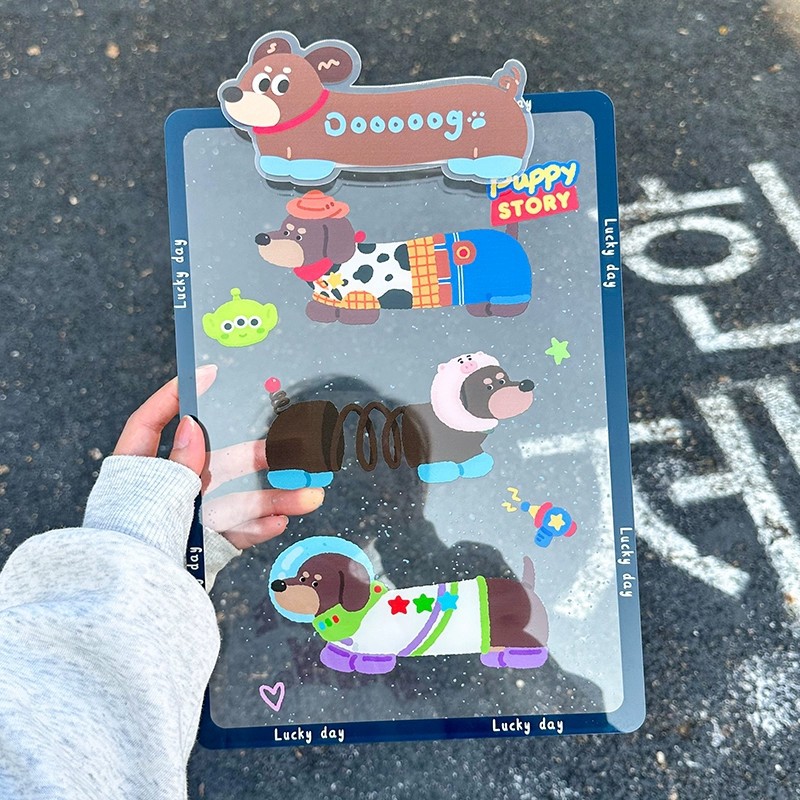 夹板写字画画垫板书写工具高透亚克力加厚可爱创意童趣玩具腊肠狗