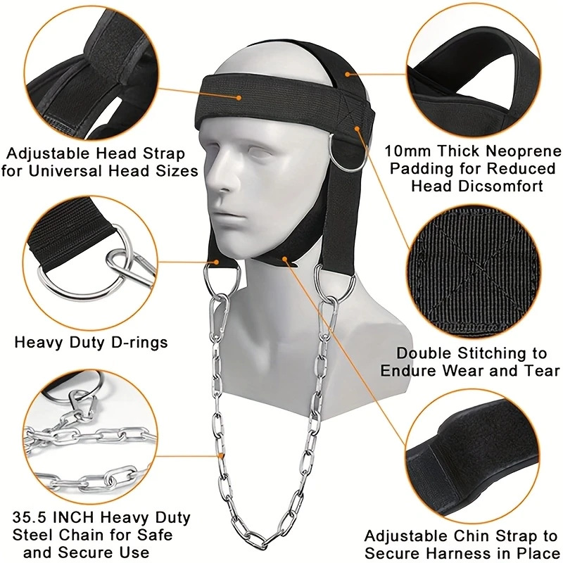 头颈部杠铃铁链带头套头颈部训练器肩部负重力量训练头颈帽练颈帽