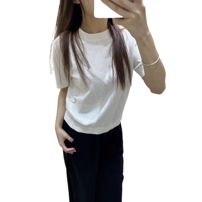 深圳南油高端女装潮牌25春夏新款女款G字母 镂空提花短袖针织衫