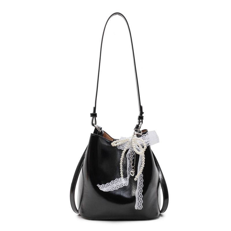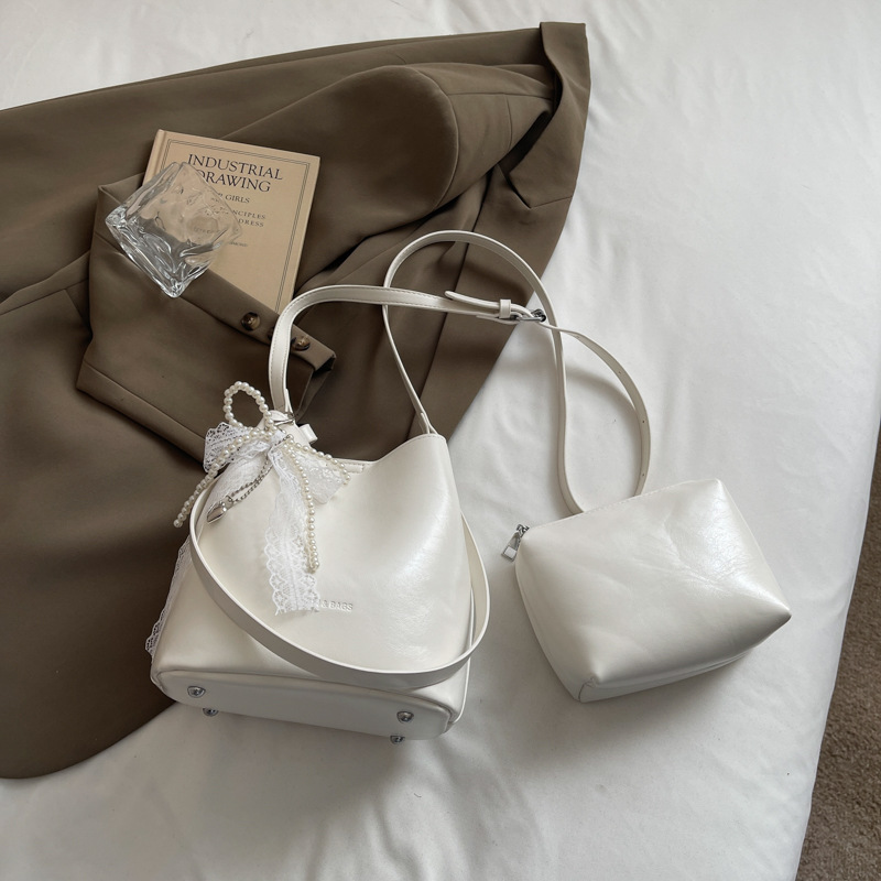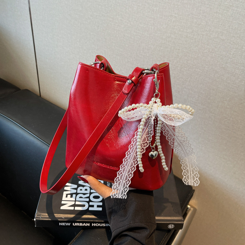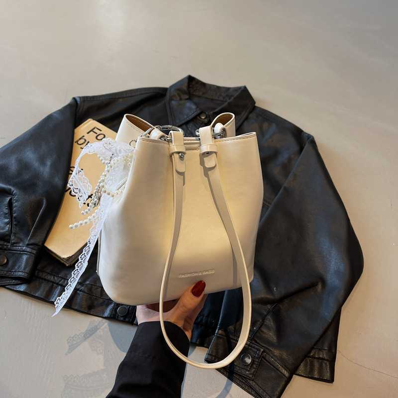 2025蝶结装饰春时尚简约大容量复古手拎包洋气质感单肩复古水桶包