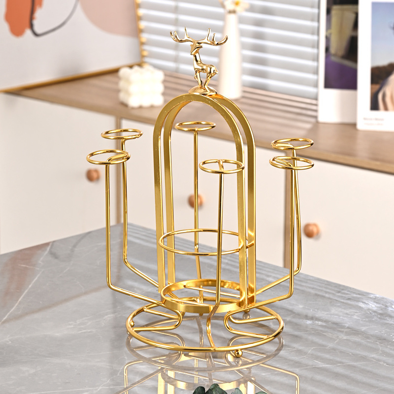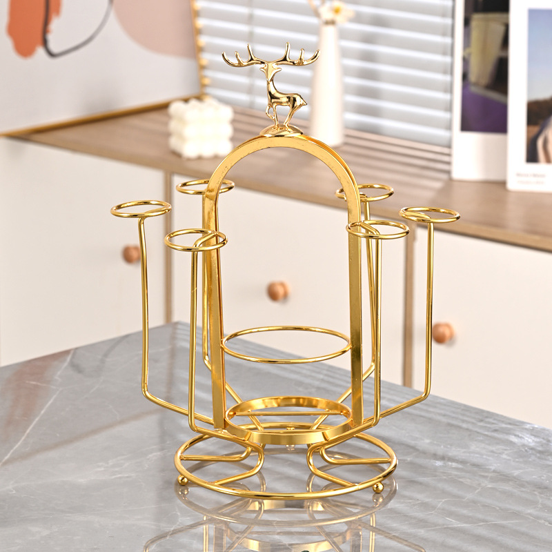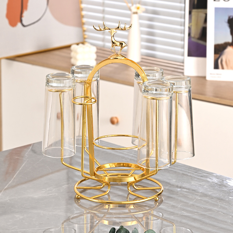 一件代发麋鹿水杯架 金色圆形沥水架 餐桌客厅杯托杯具套装收纳架