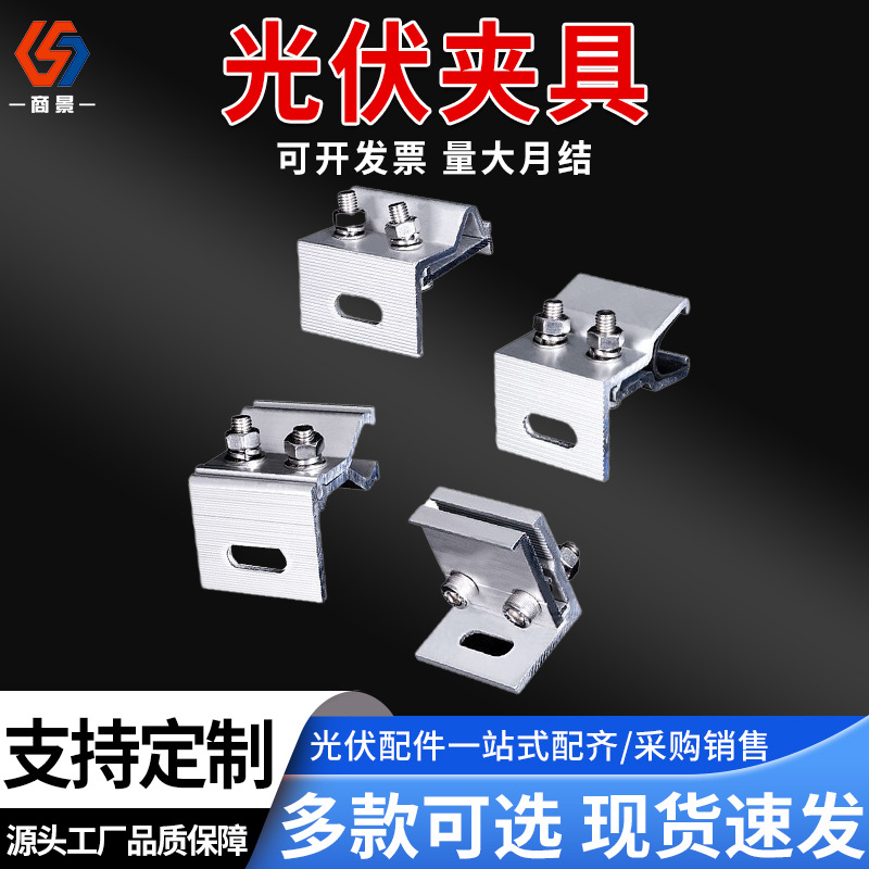 定制彩钢瓦铝合金夹具光伏角驰支架T型夹具屋面太阳能电池板配件