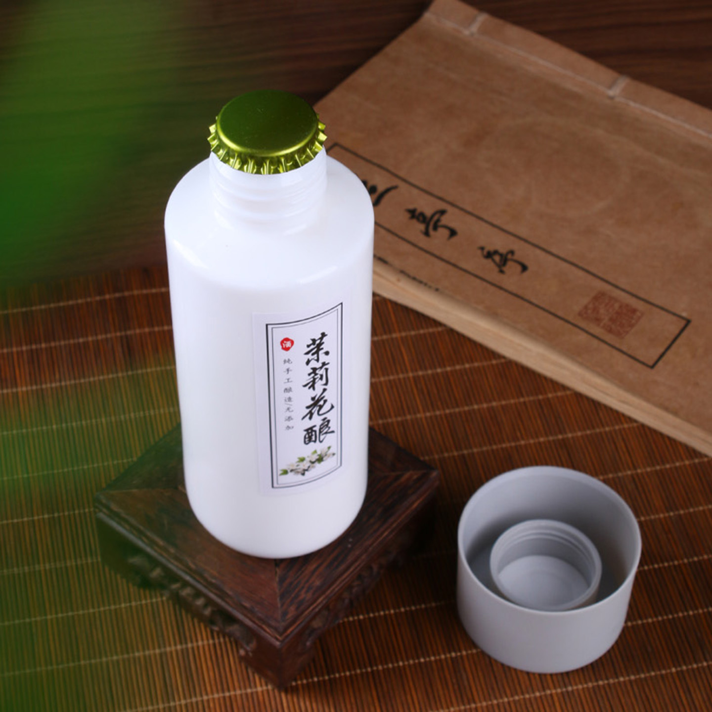 高档遮光黄酒瓶乳白玻璃米酒瓶双层密封盖果酒瓶半斤饮料矿泉水瓶
