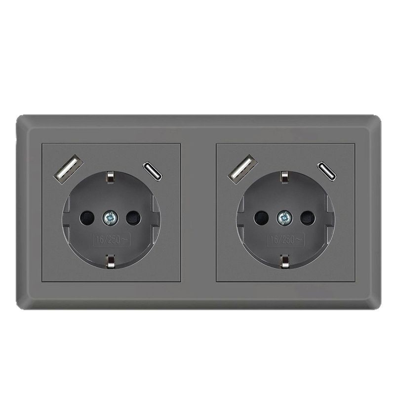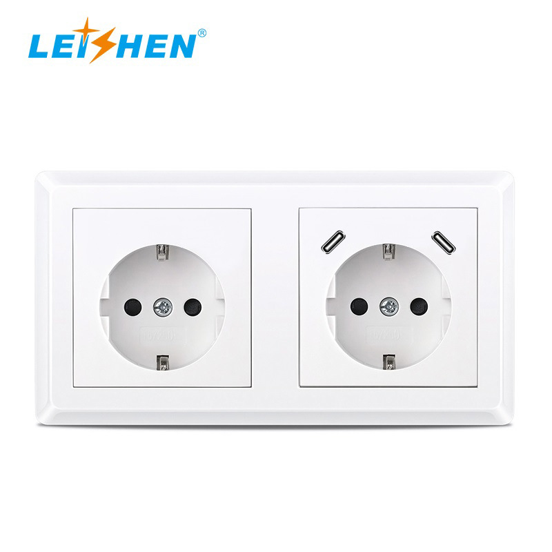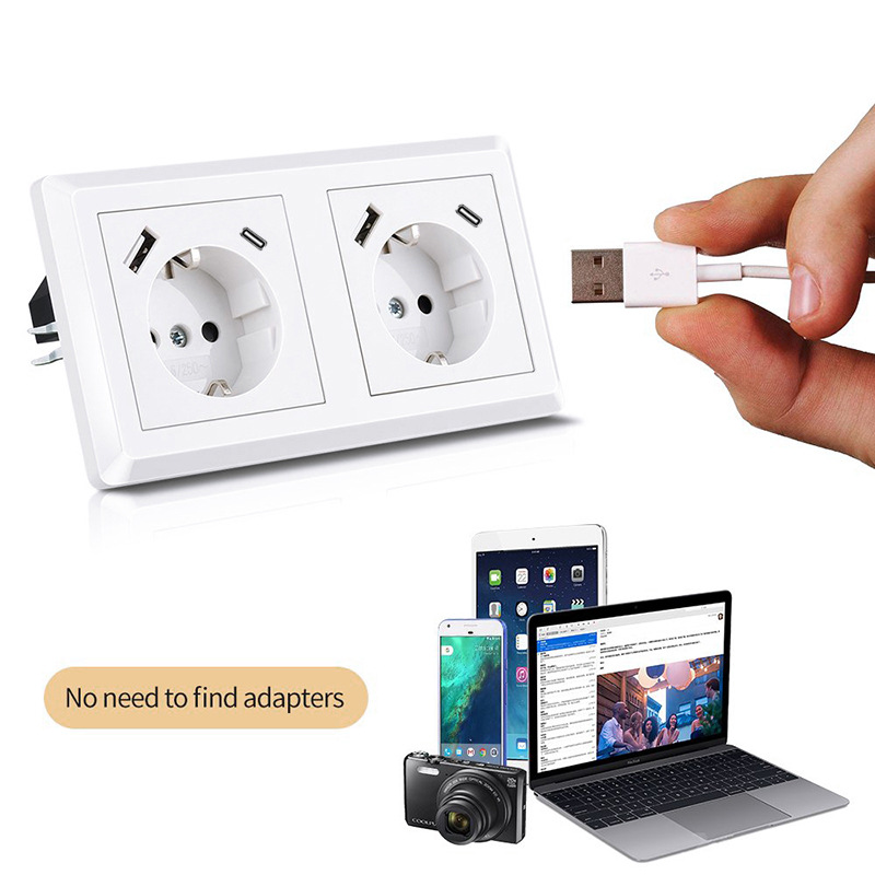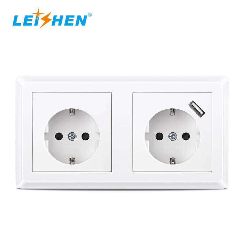 80型双USB欧式韩国德式家用充电器插座墙壁插座面板双联TUV认证插