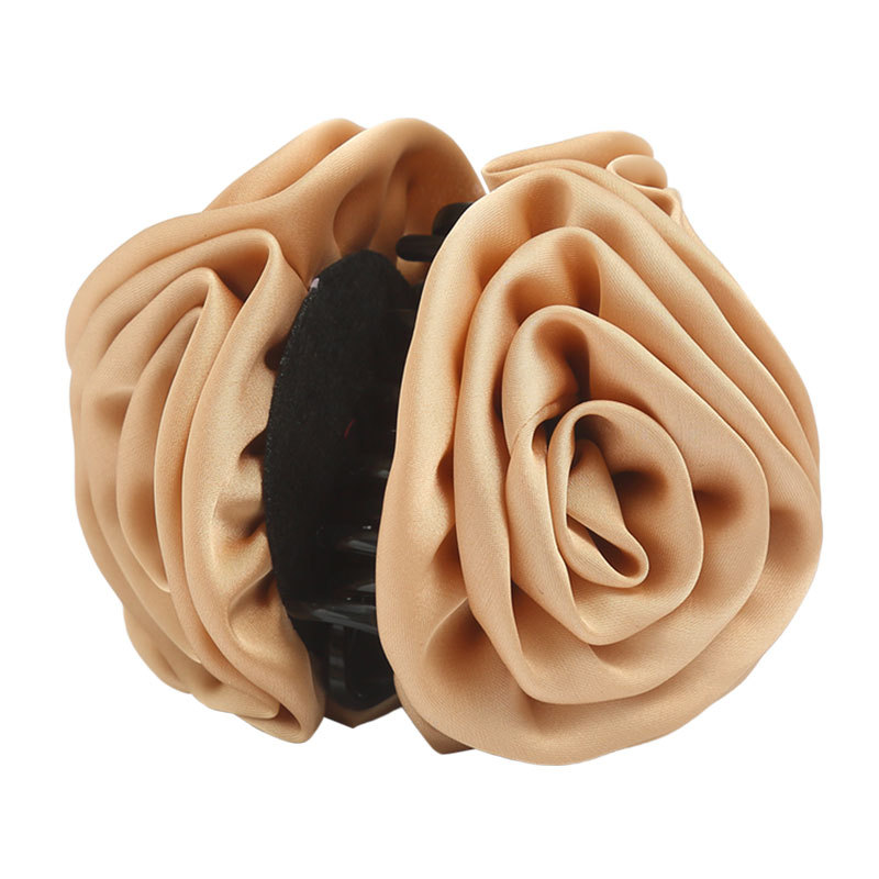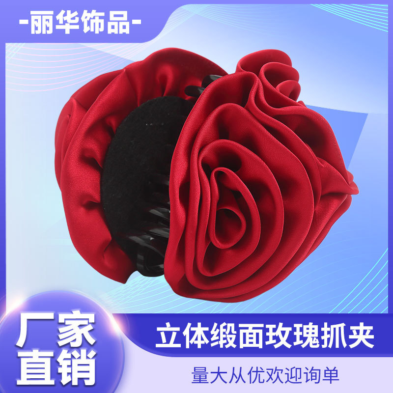 外贸春夏缎面玫瑰发夹高级感干枯玫瑰抓夹时尚通勤鲨鱼夹批发