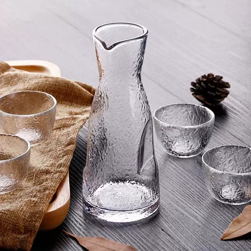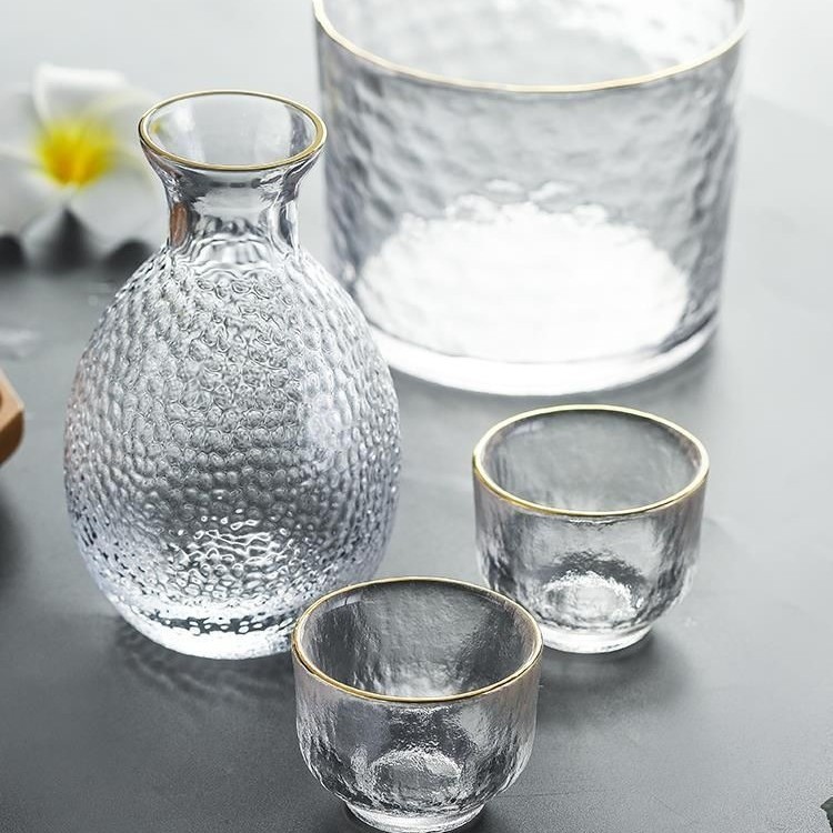 日式创意锤纹清酒杯玻璃杯酒壶温酒器套装餐厅清吧红酒杯家用批发