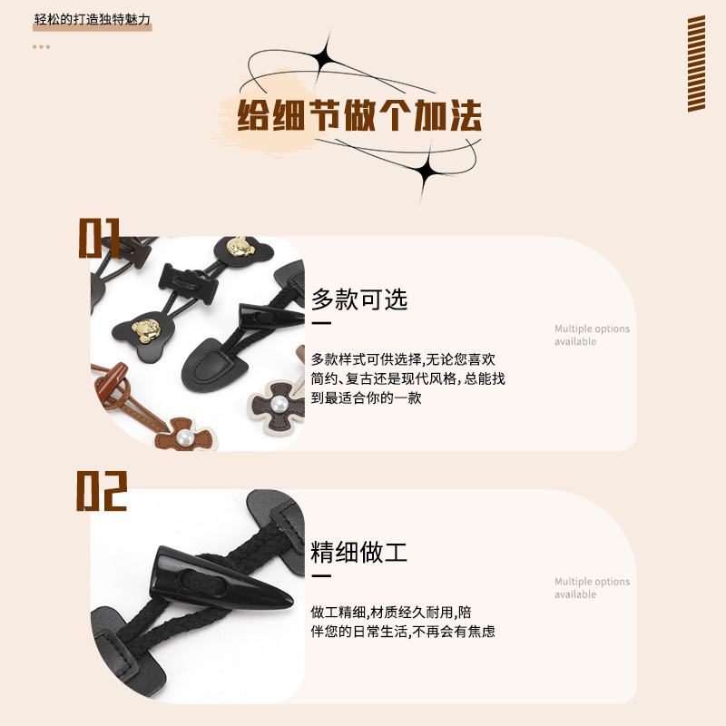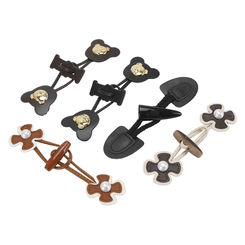 复古牛角装饰皮对扣 大衣风衣对扣花朵纽扣儿童外套装饰配件