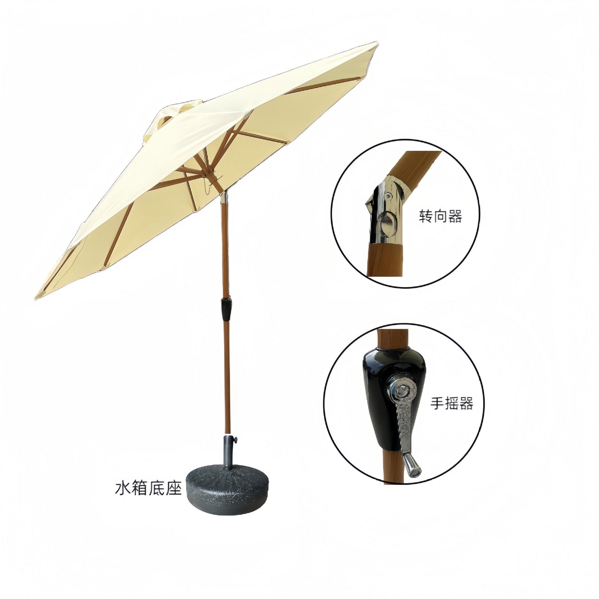 | 尺寸 | 2.5m圆伞【配32L水箱底座】 | 尺寸 | 2.7m圆伞【配32L水箱底座】 |