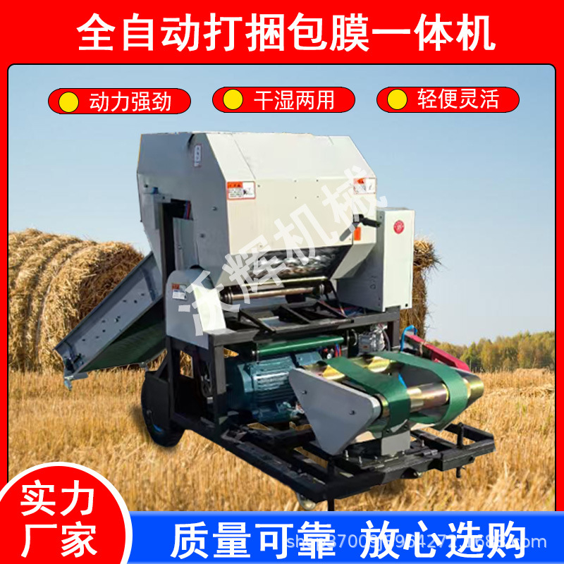 玉米秸秆青储包膜机牧草青黄储打包机全自动打捆包膜一体机