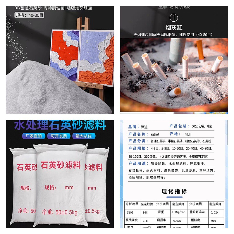石英砂现货喷砂除锈水处理肌理画用白砂滤料环氧地坪熔融石英砂