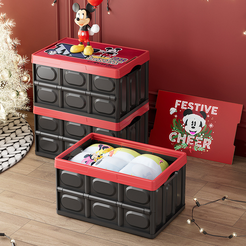 米奇折叠箱汽车后备箱大容量车载储物箱家用木盖衣服零食收纳箱