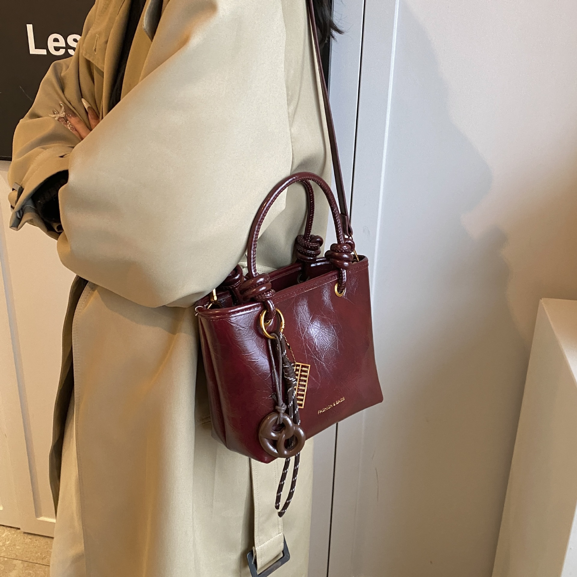 颜色咖色带挂件