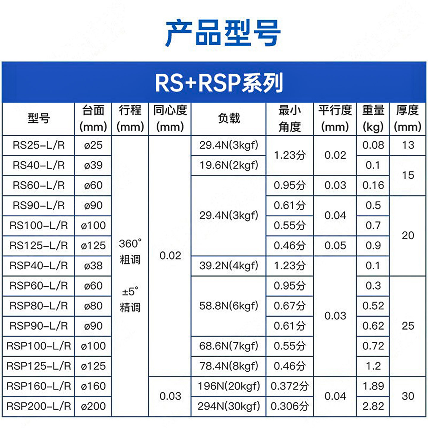 | 规格 | RS90-L | 规格 | RS125-L |