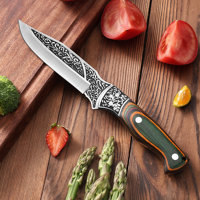户外小刀直刀剔骨刀高硬度锋利分割刀野营便携吃肉剔肉割肉多用刀