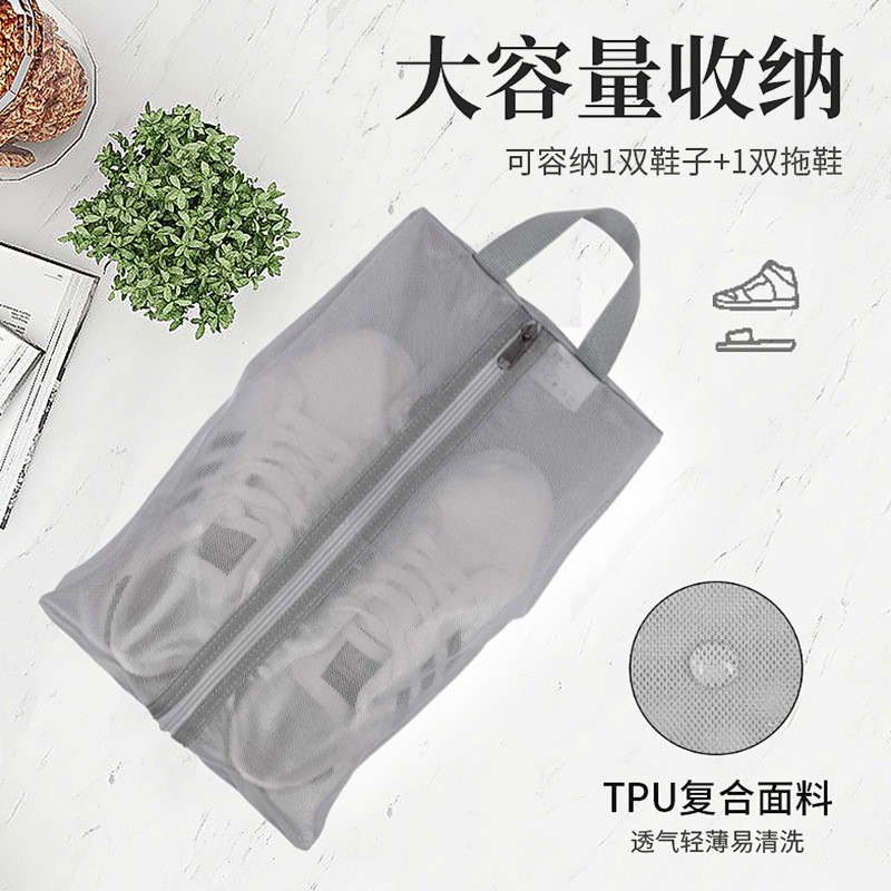 鞋子收纳袋手提袋旅行鞋袋防水网格复合TPU收纳袋化妆包可定LOG