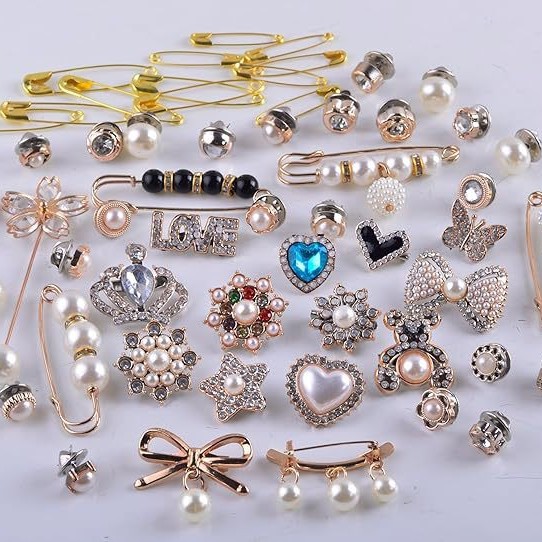 跨境专供套装袜子胸针金色闪亮首饰饰品,别针礼服蝴几何