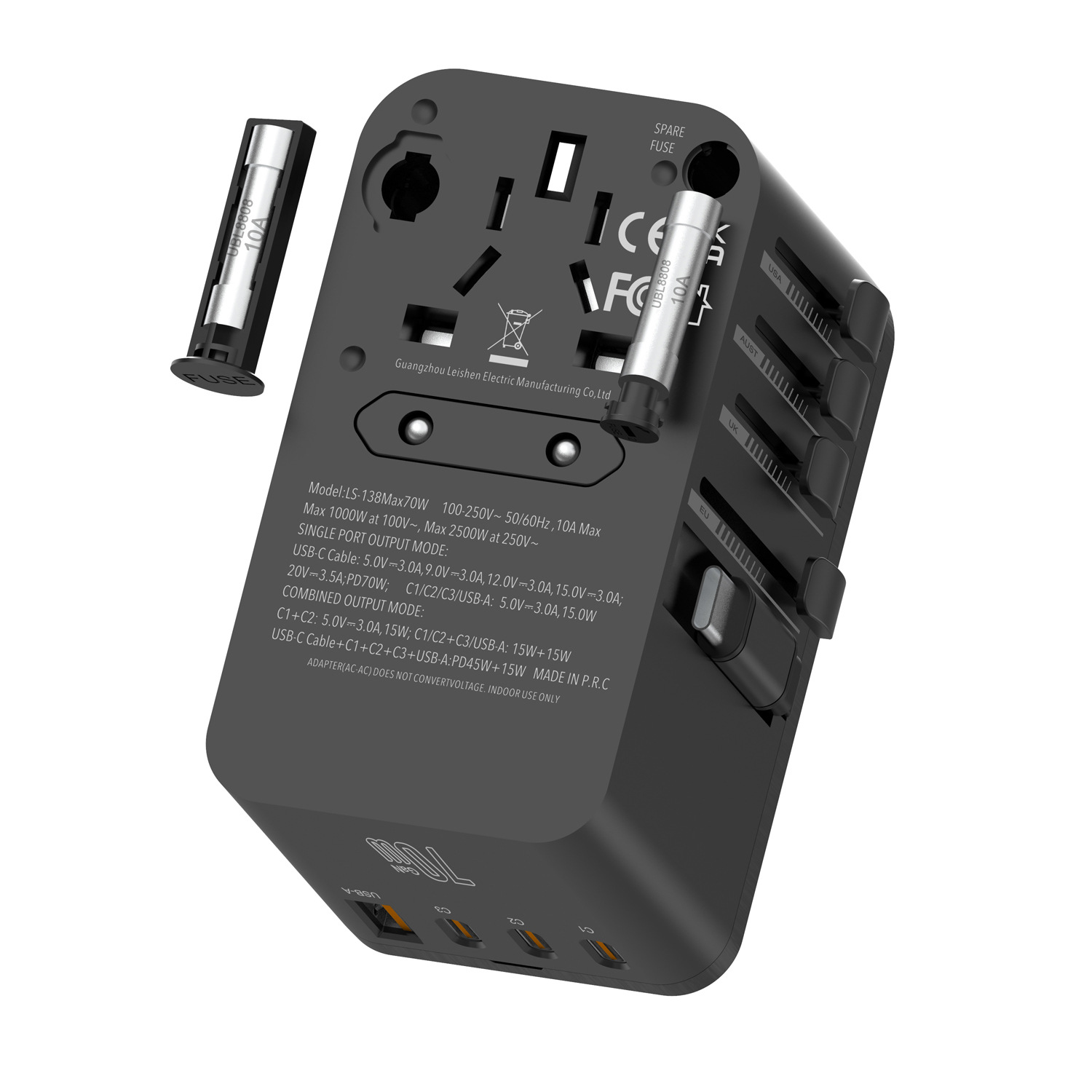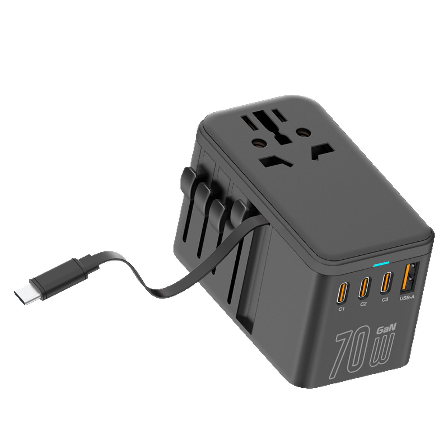 氮化镓70W带充电线手机充电转换插头万用国际旅行充电器全球通用