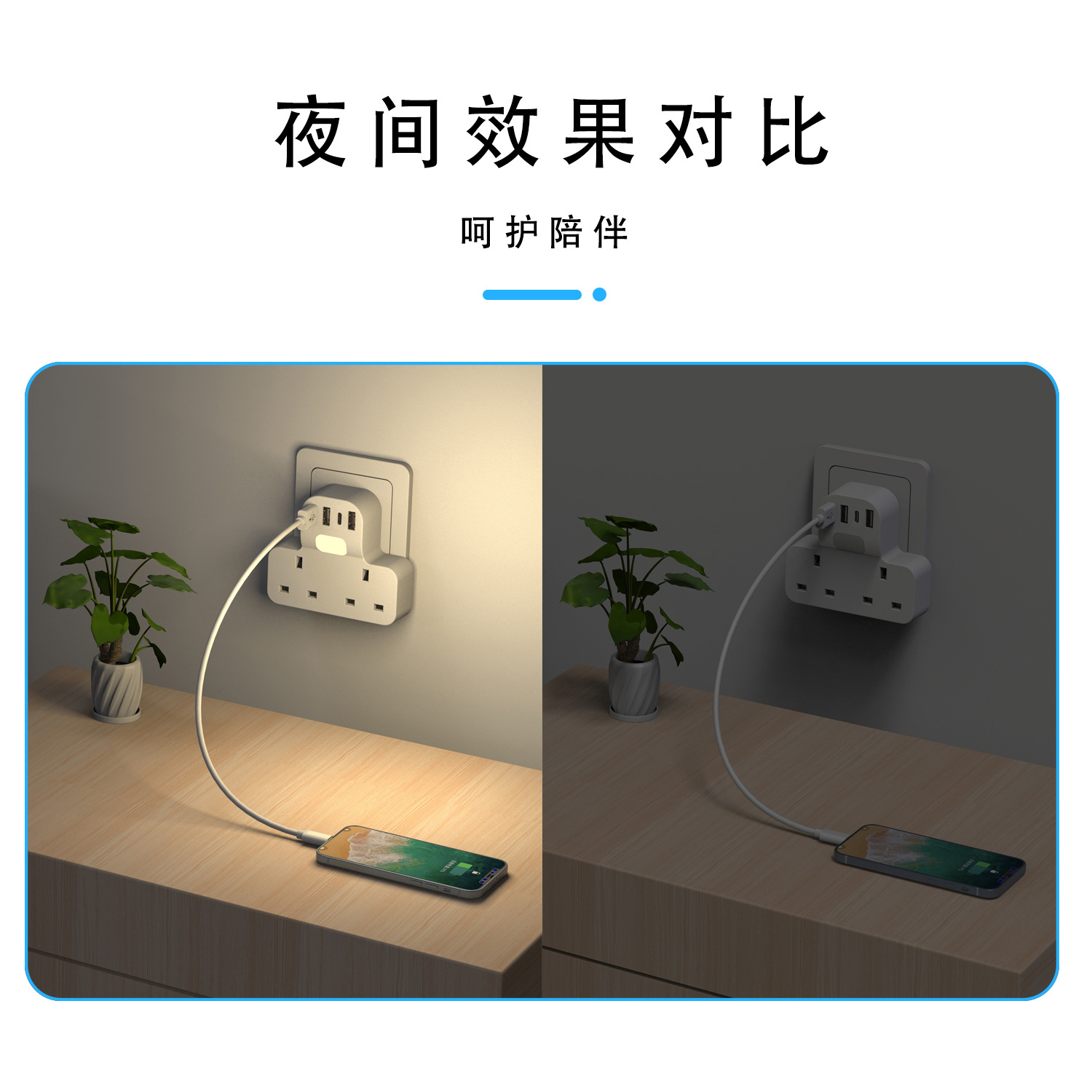 跨境电商新款专供英规转换插座家用usb插座转换排插带夜灯无线插