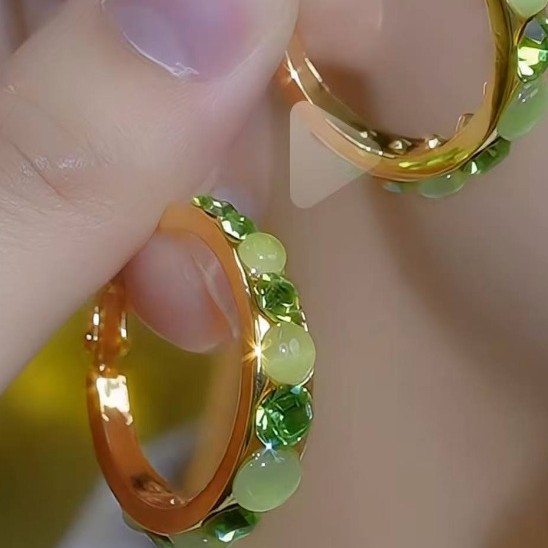 轻奢高级耳环镶钻圆圈耳扣韩国气质风时尚感气质耳饰耳圈耳钉批发