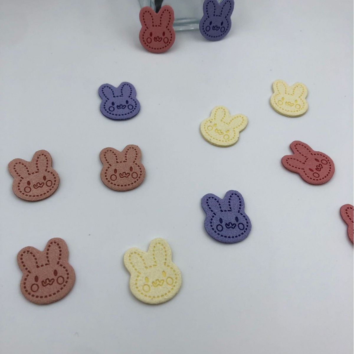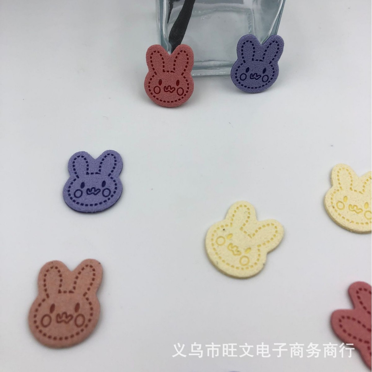 新款可爱小兔子头皮标手工缝纫秋冬帽子围巾头饰皮牌服装辅料批发