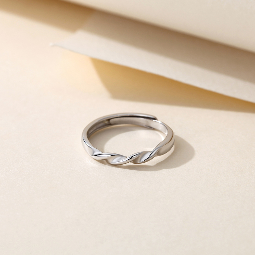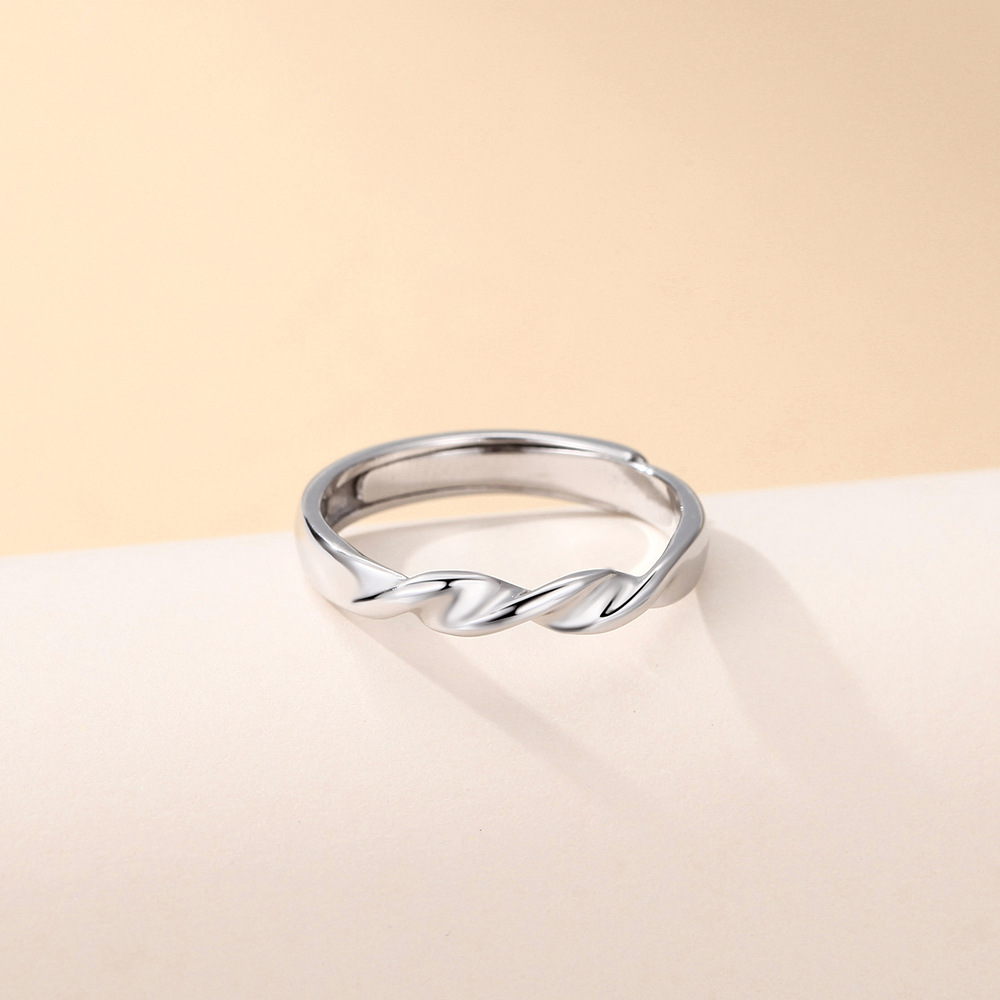 S999纯银莫比乌斯环情侣戒指男女一对戒韩版简约学生开口指环礼物