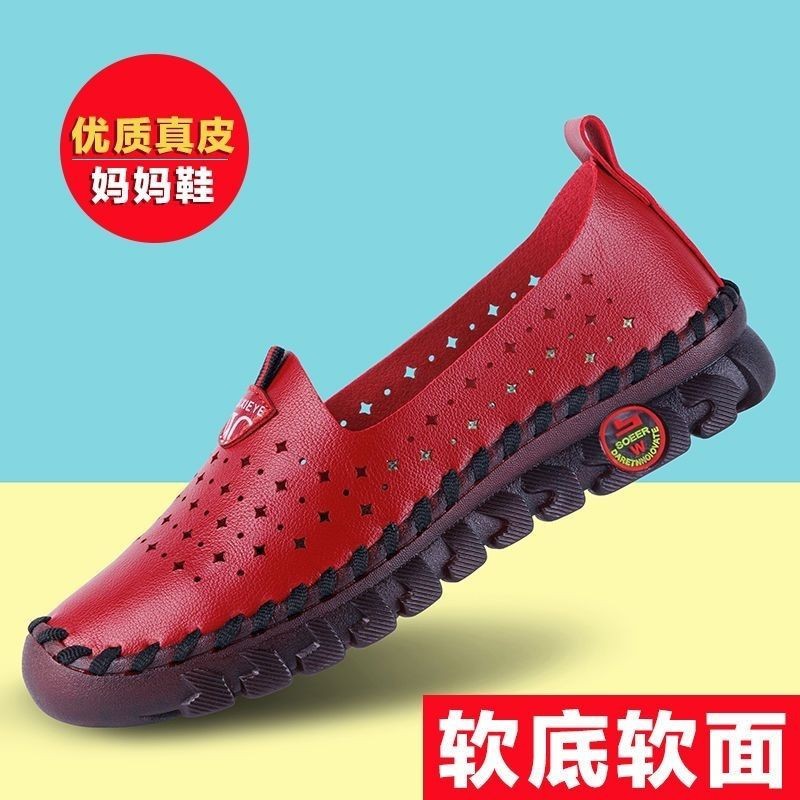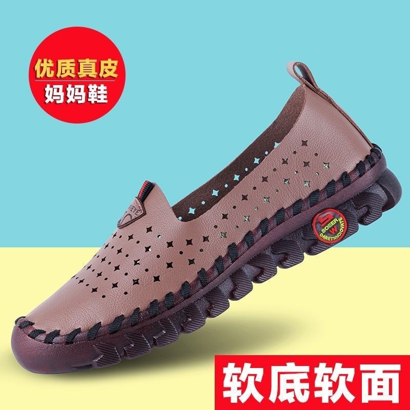 镂空软底手工缝制妈妈鞋女士防滑洞洞牛筋平底中老年百搭透气凉鞋