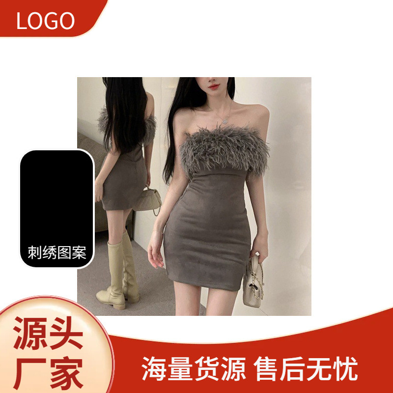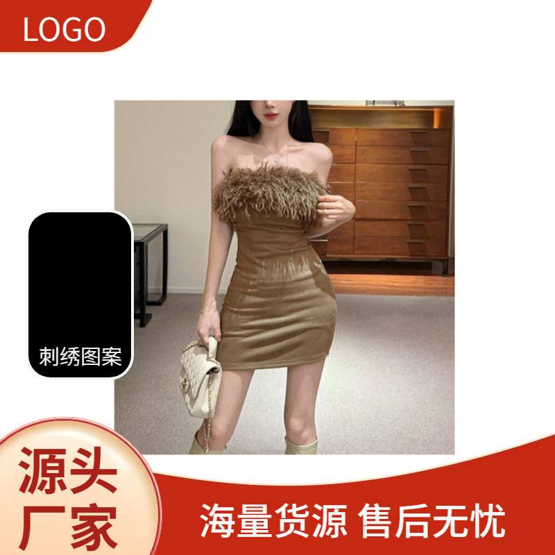 麂皮绒拼接无袖包臀连衣裙女秋季新款修身显瘦辣妹短裙小个子显高