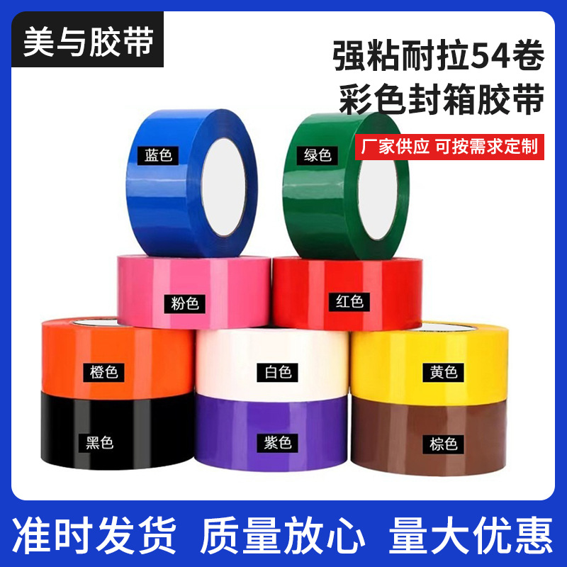 颜色 | 白色,粉色,橘色,红色,紫色,灰色,绿色,蓝色,黑色,咖啡,玫红,苹果绿,天蓝,鲜黄,土棕 | | 产品应用 | 快递封箱,物流打包,外贸出口 |