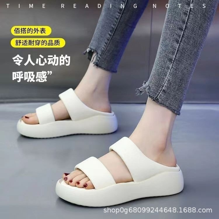 跨境踩屎感软皮拖鞋女夏季外穿2025年新款百搭面包一字拖厚底双带