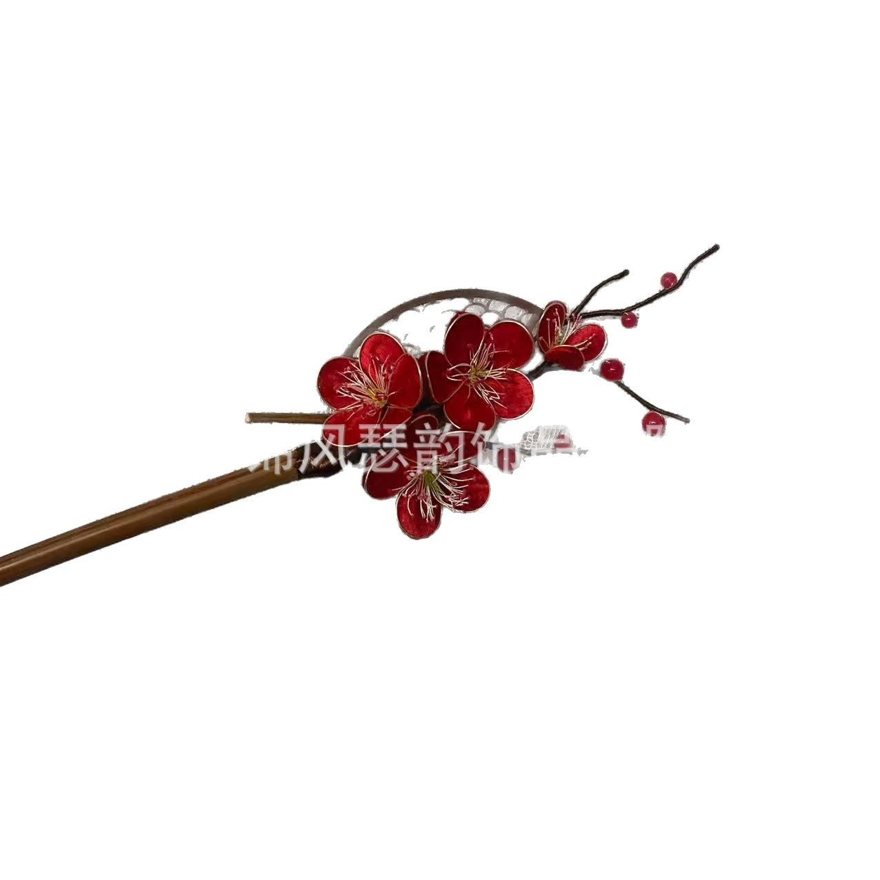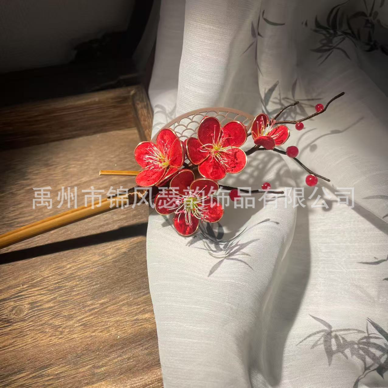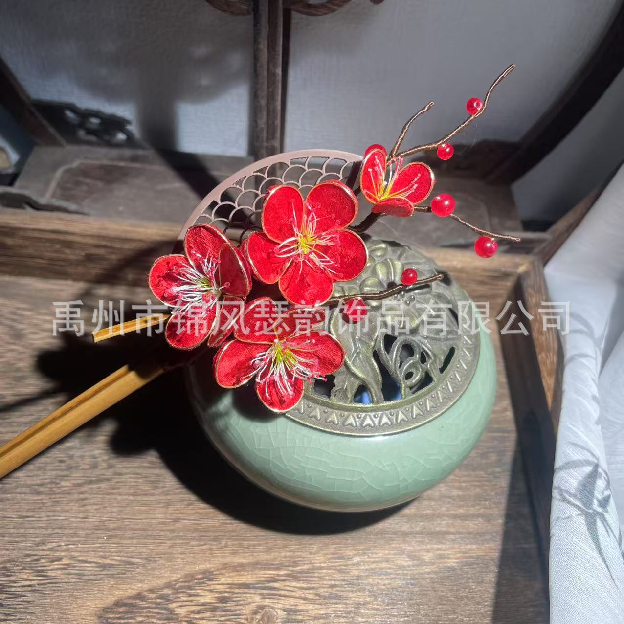 红梅非遗绒花发簪手工绒花发饰梅花古风汉服配饰簪子盘发国风发饰