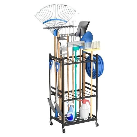 金属工具收纳器庭院工具收纳架车库工具架铁锹架工具车农具架