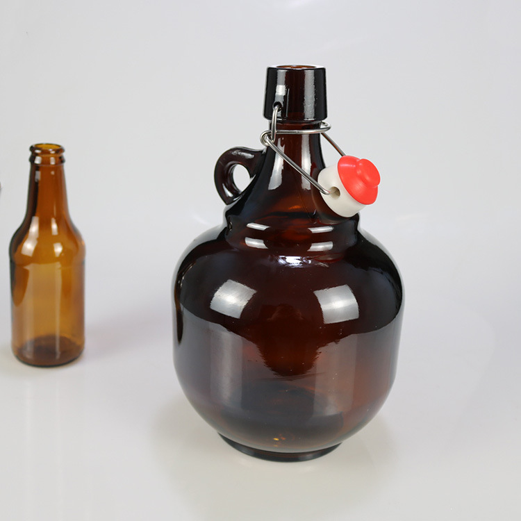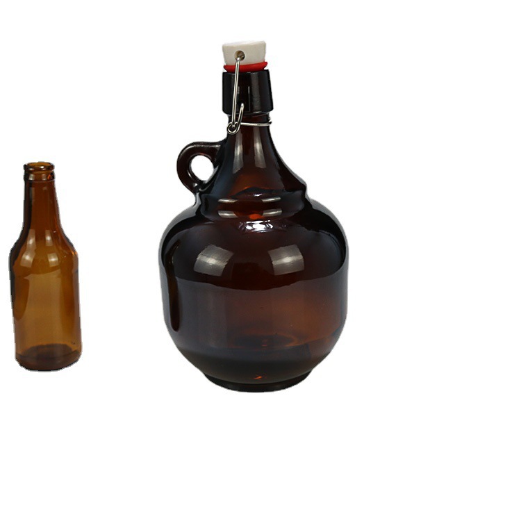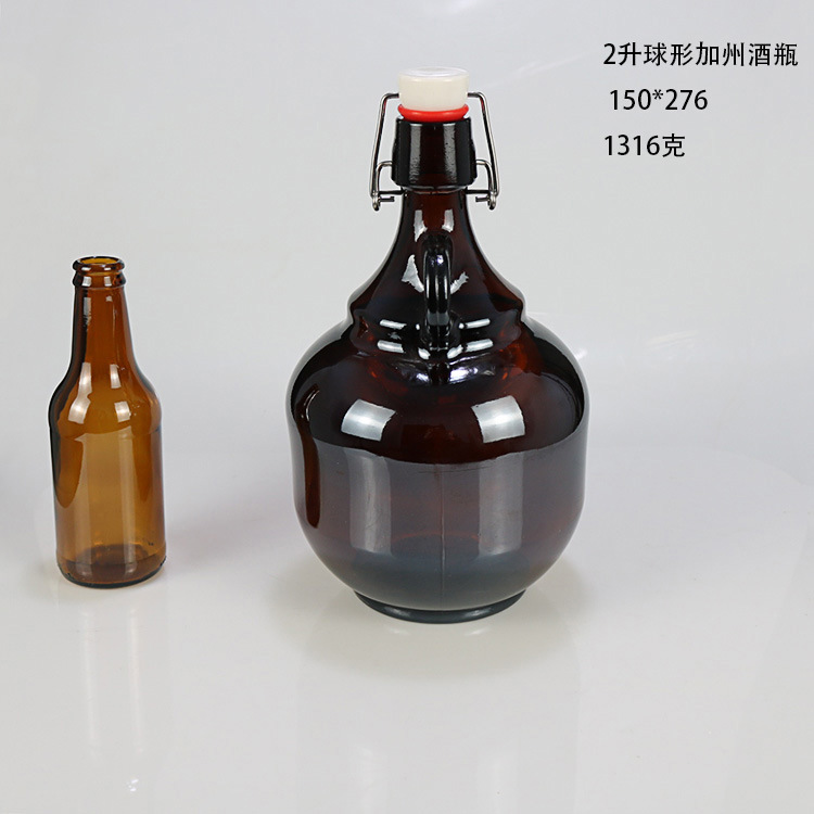 厂家供应茶色棕色1升2升卡扣瓶带把大肚加州酒瓶创意玻璃瓶分装