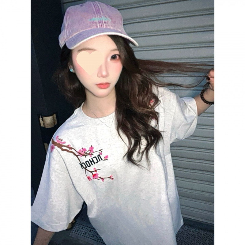 梅花刺绣【220纯棉 螺纹领】夏季新款国潮情侣短袖恤女学生上衣