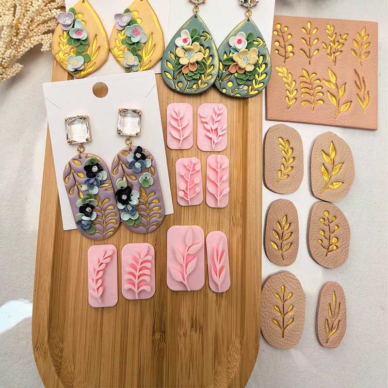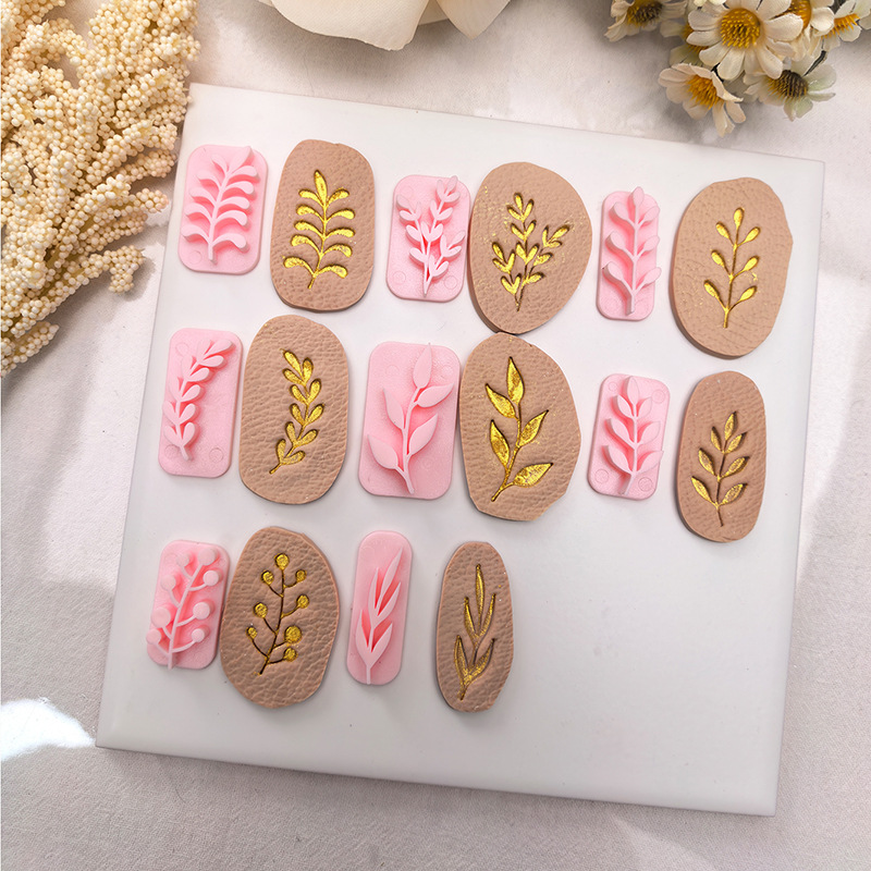 跨境8件套按压树叶印章软陶粘土模具切模高精度手工耳饰DIY制作