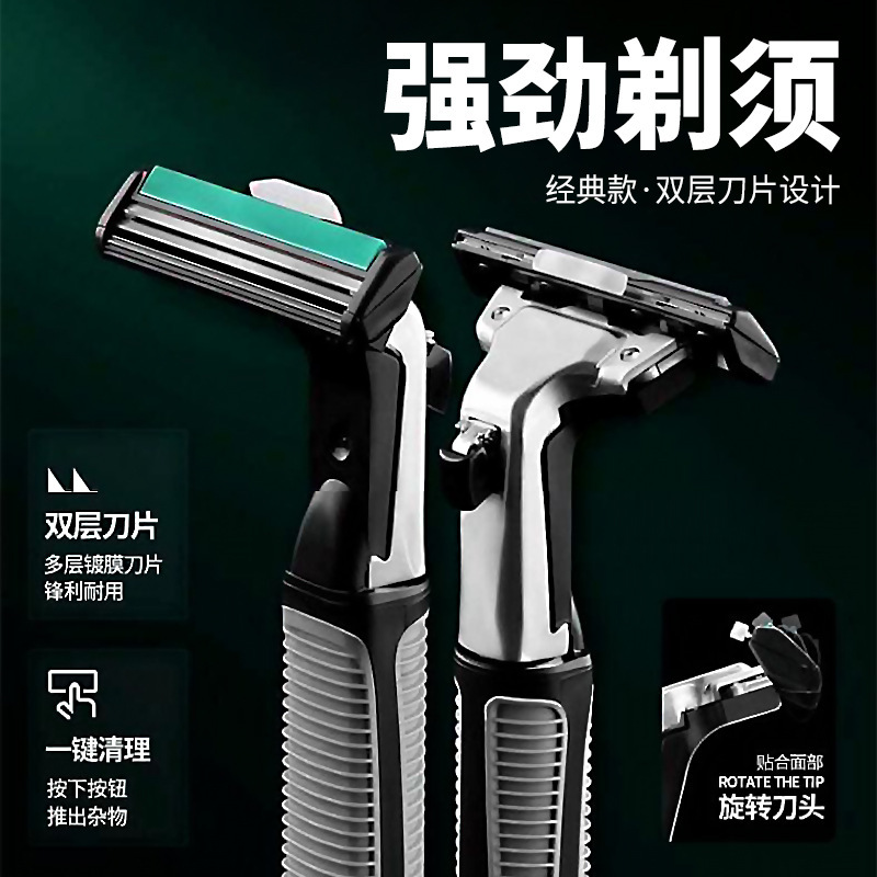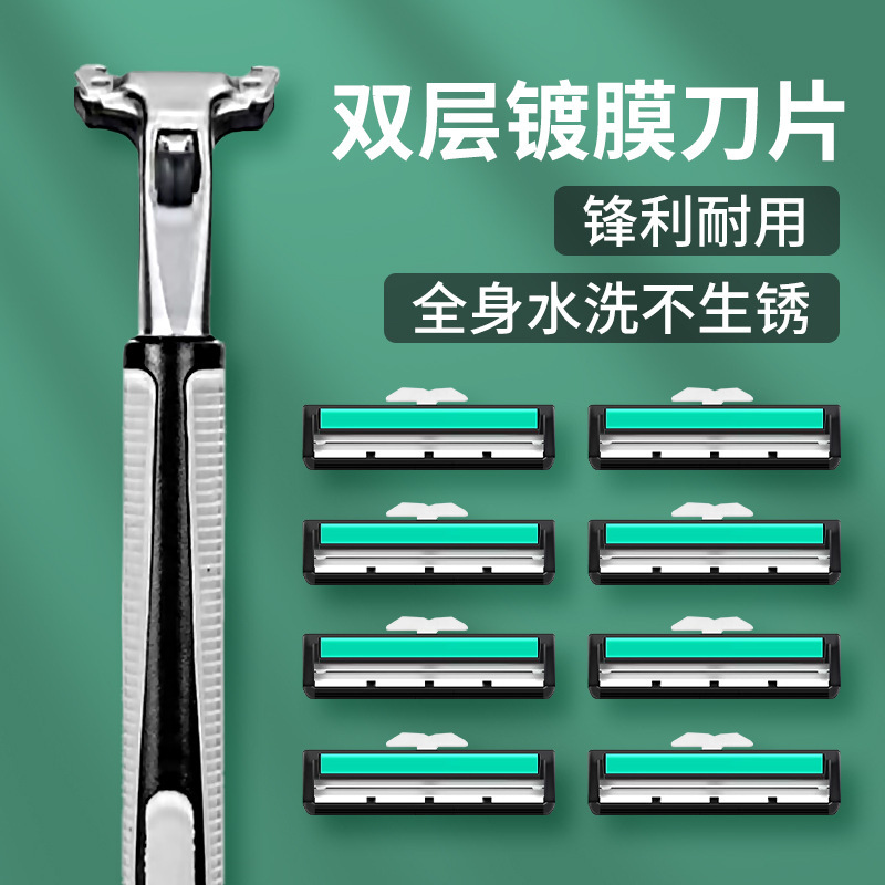 剃须刀双层镀膜刀片男士手动刮胡刀片刀架老式防刮伤刮脸刀刮毛刀