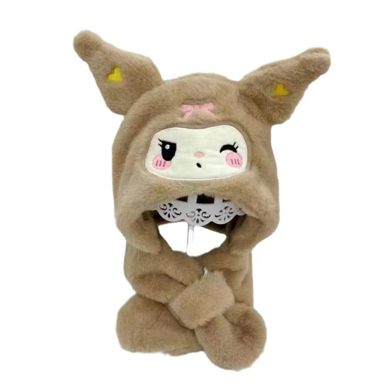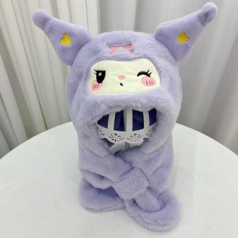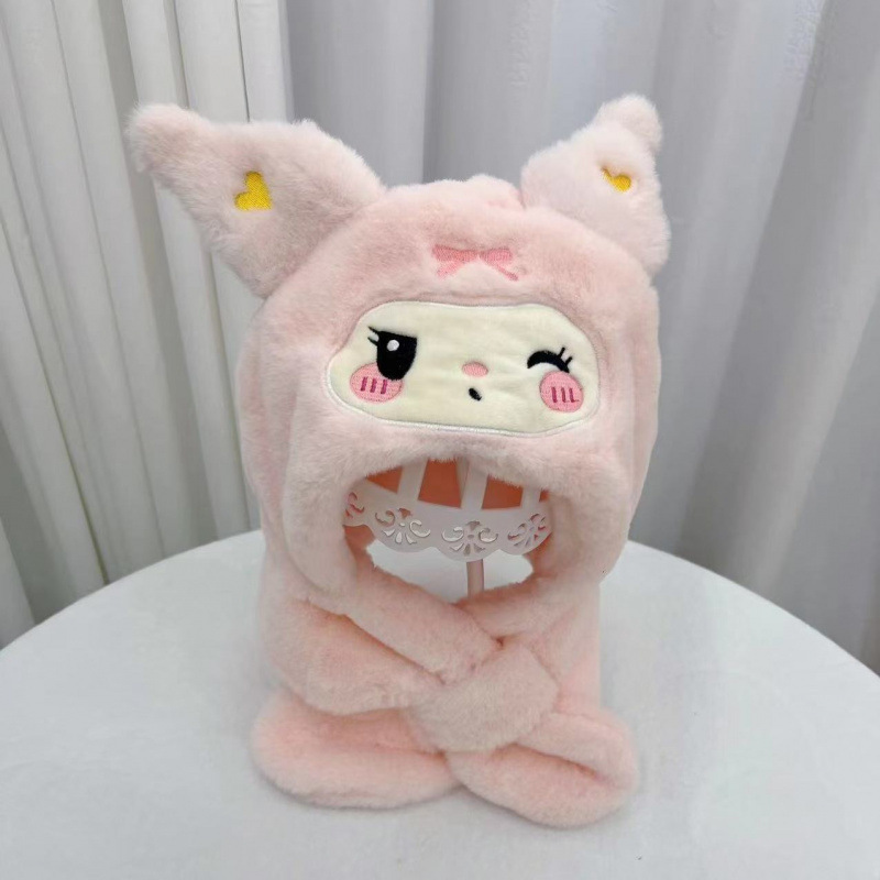 2024冬季新款网红库洛米儿童帽子围巾一体帽围脖两件套保暖毛绒帽